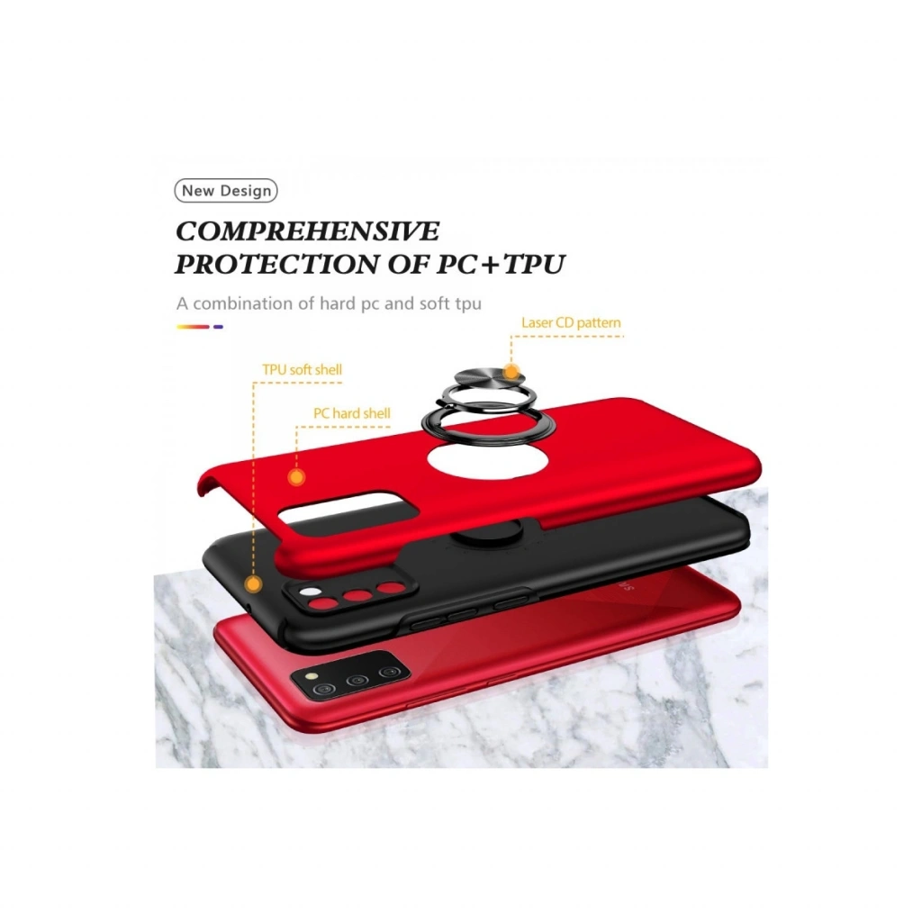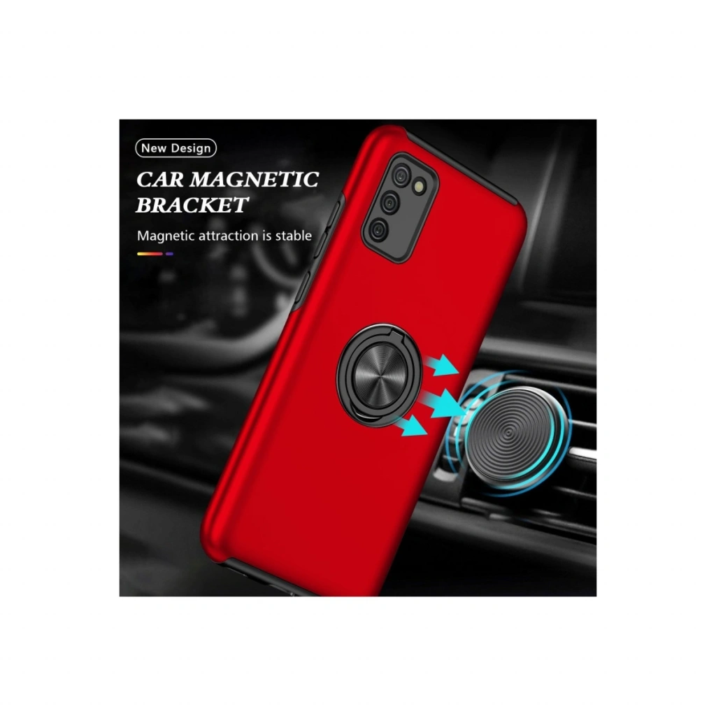 • Samsung Galaxy A02s Kılıf Elit Yüzüklü Kapak - Kırmızı