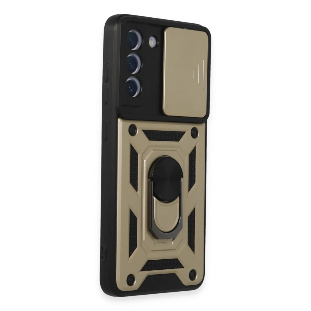 • Samsung Galaxy S21 Fe Kılıf Pars Lens Yüzüklü Silikon - Gold