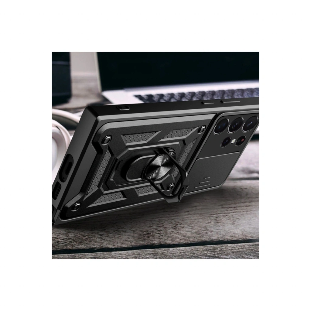 Kılıfın arka kısmında yer alan entegre metal halka hem tutucu hem de stand olarak işlev görür. Eller serbest video izleme, içerik görüntüleme ya da masaüstü kullanımı için idealdir.