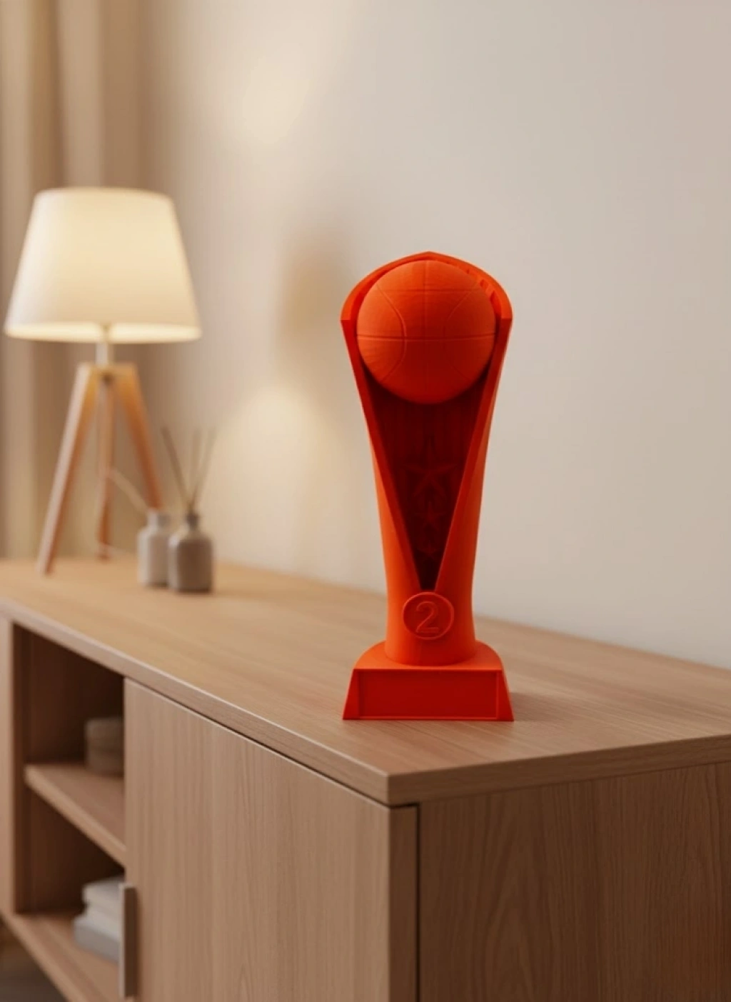 Turuncu Kupa 23 cm, spor temalı dekor sevenlerin koleksiyonlarına güçlü bir ekleme yapmak isteyecekleri şık bir tasarımdır. Parlak turuncu rengi, dikkat çekici duruşu ve basketbol toplu üst bölümü ile ortama modern bir enerji katar. Hafif ancak sağlam yapısıyla kolayca taşınabilir ve her yüzeyde dengede durur. Evde raf üzerinde, ofiste masa üzerinde veya spor alanlarında dekoratif obje olarak sergilenebilir. Ayrıca spor tutkunu çocuklar için motive edici bir masaüstü aksesuarı olarak da oldukça etkilidir. Doğum günü, özel gün veya spor temalı etkinliklerde hediye olarak verebileceğiniz es ve anlamlı bir seçimdir.