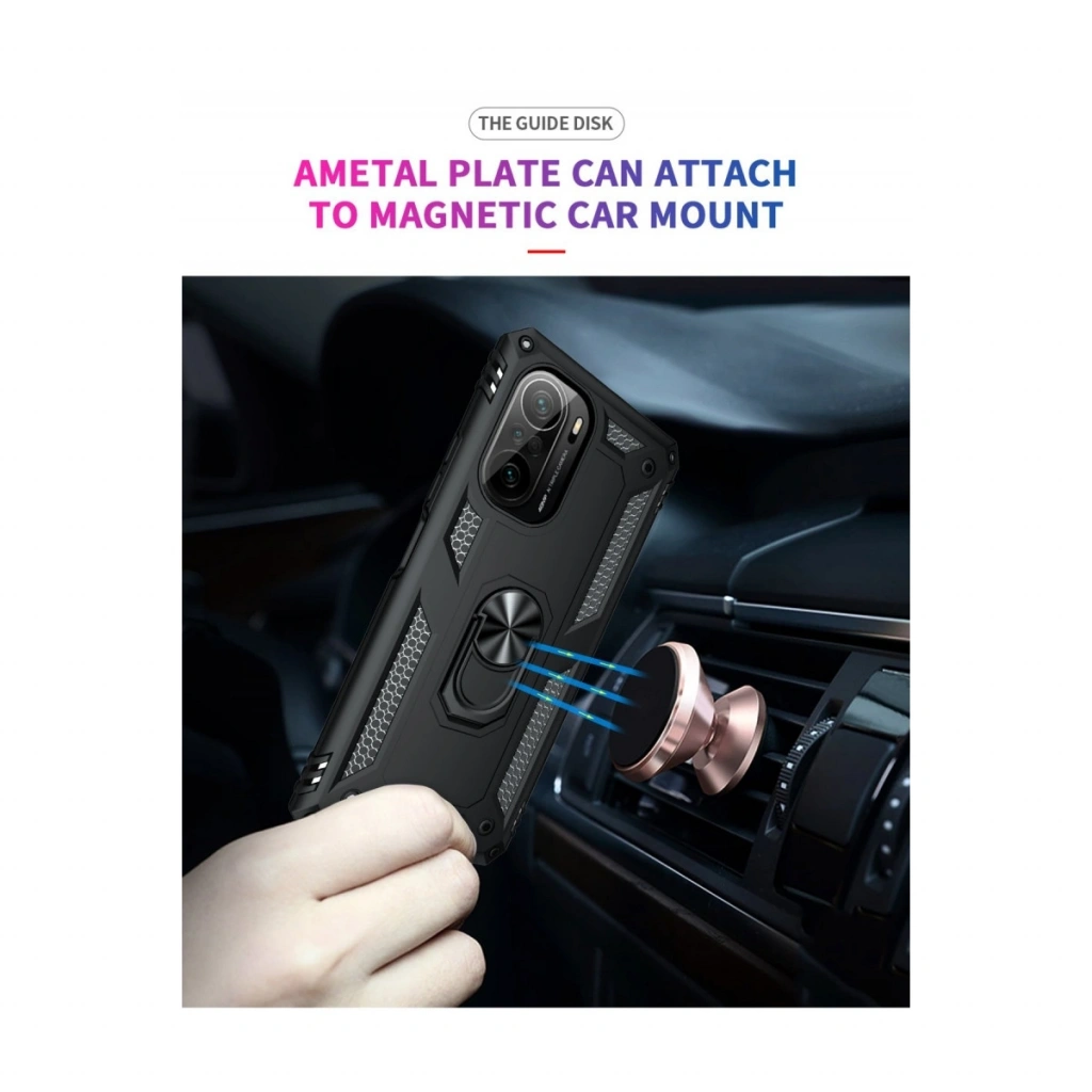• Xiaomi Poco F3 Kılıf Sofya Yüzüklü Silikon Kapak - Siyah