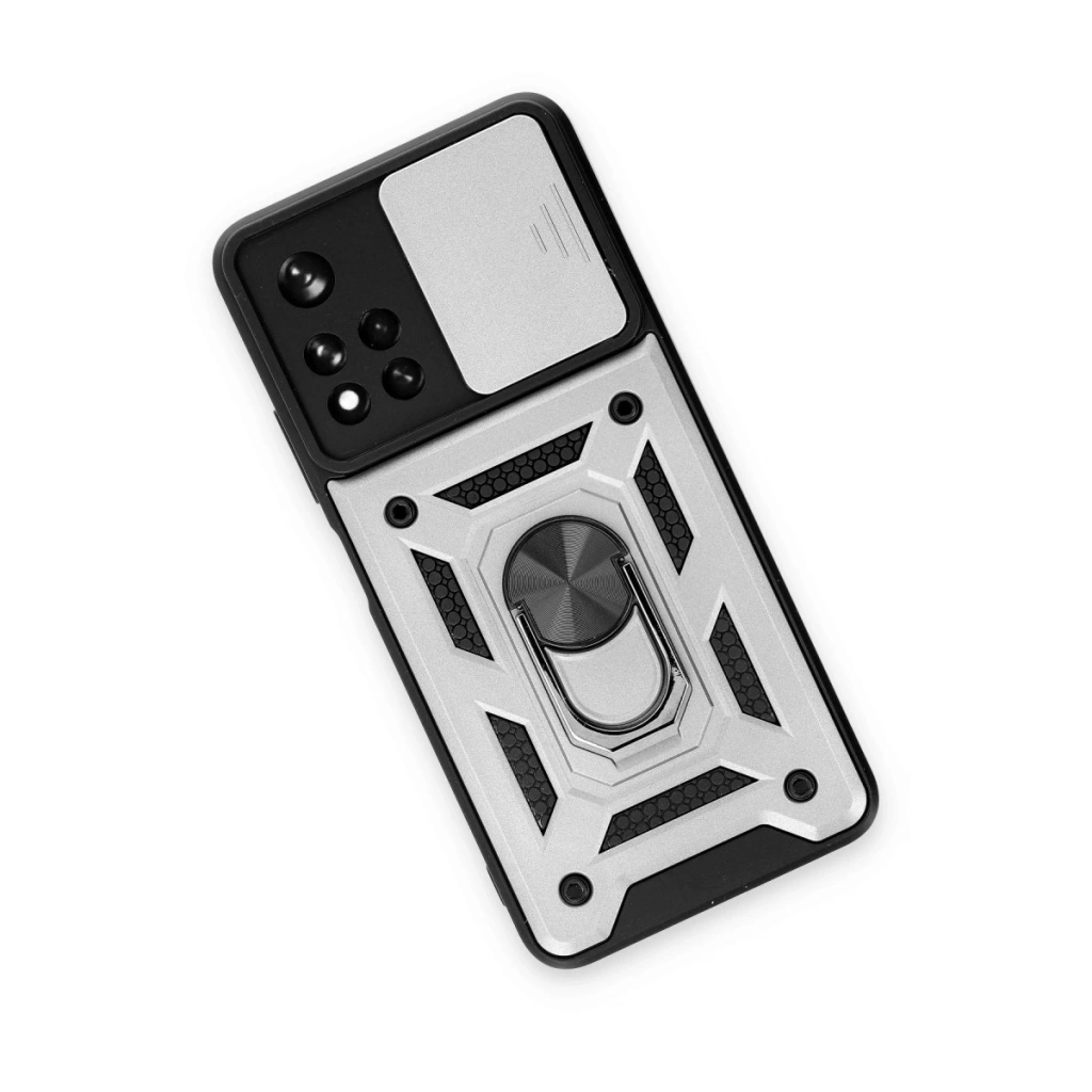 Xiaomi Poco M4 Pro 5g Kılıf Pars Lens Yüzüklü Silikon - Gümüş