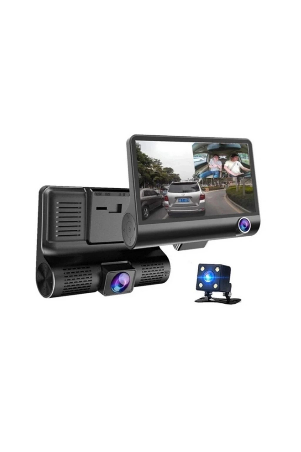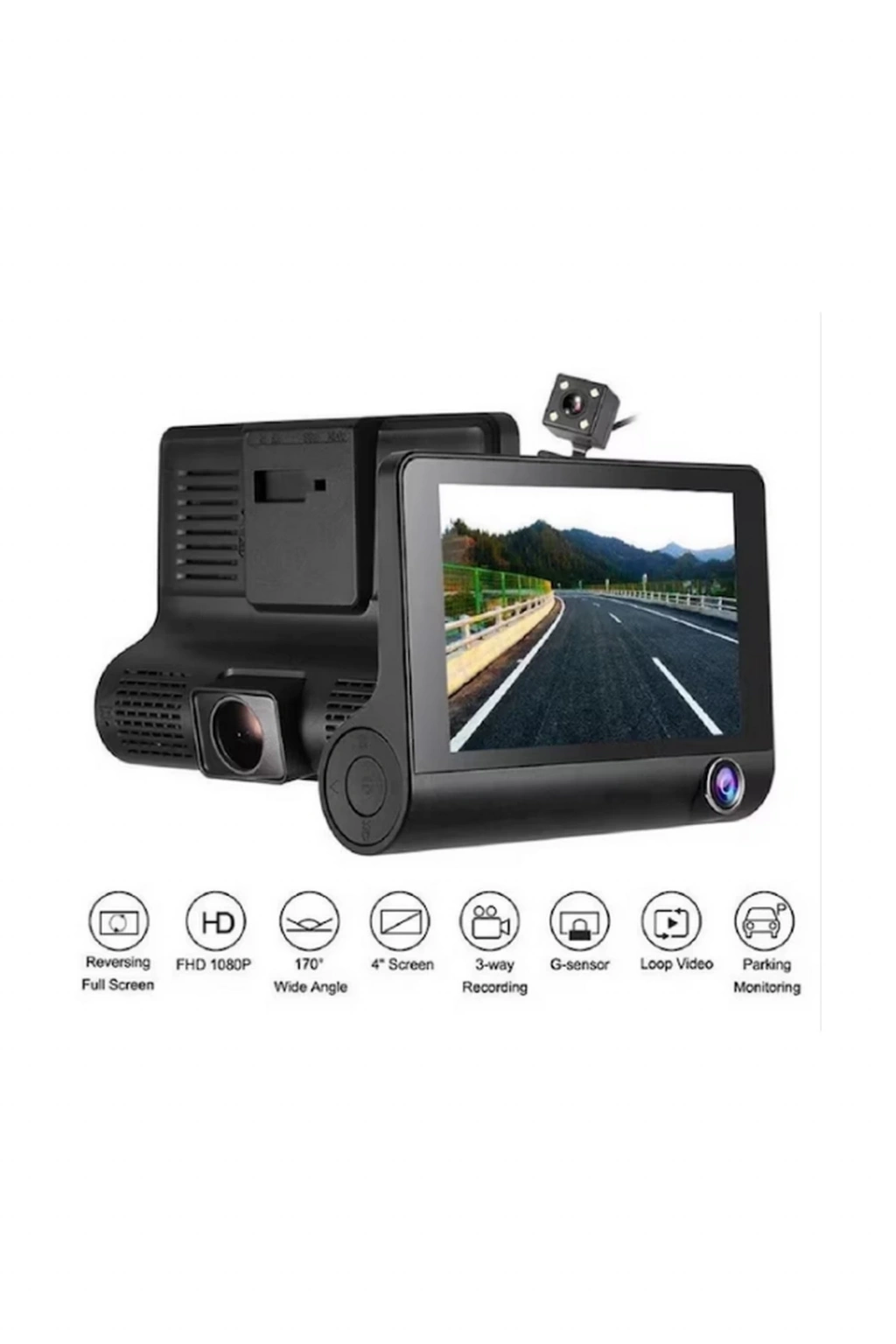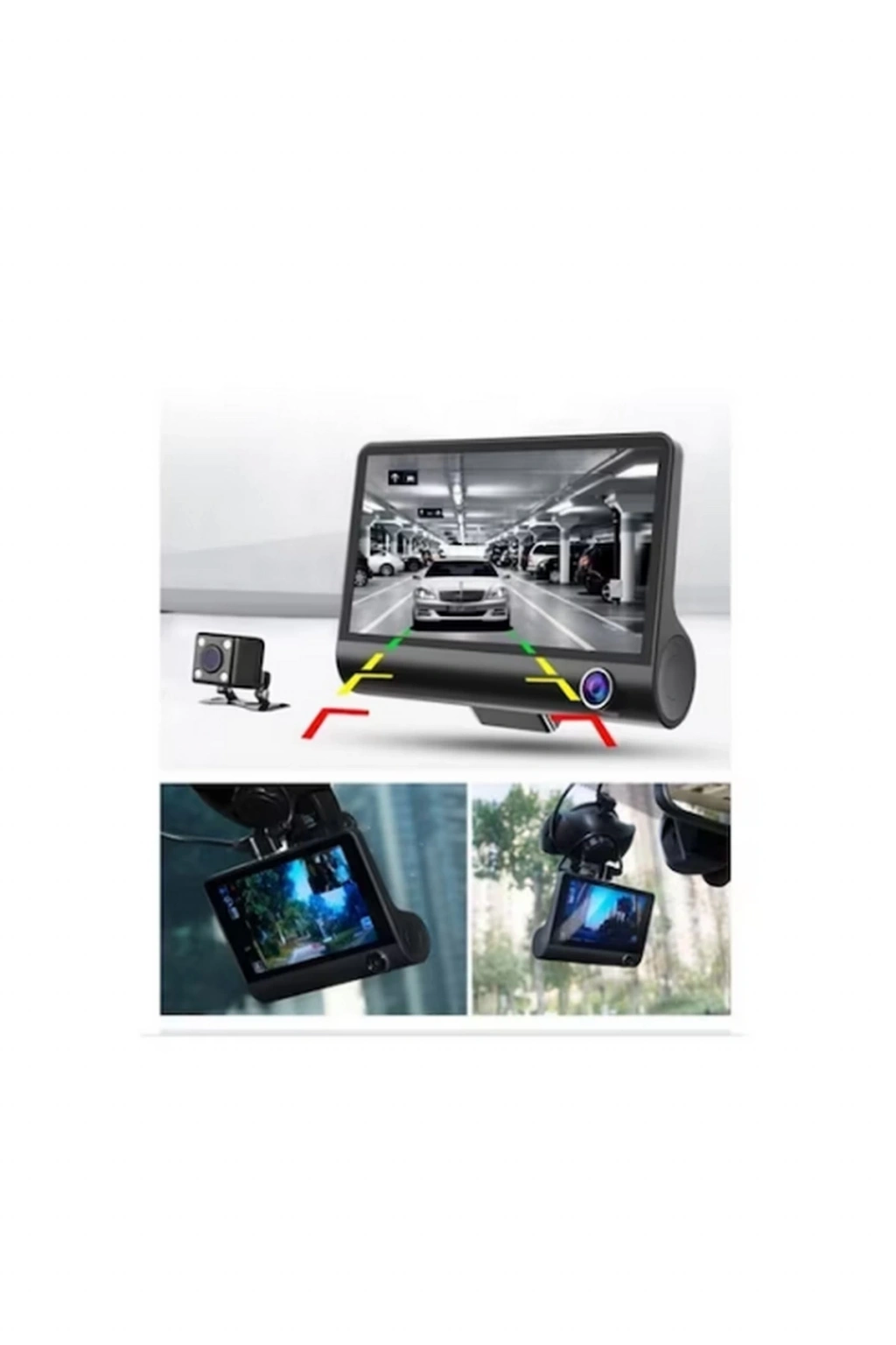 Araç Içi Kamera Gece Görüşlü 3 Kameralı 4 Inç 1080p Yol Kayıt Kamerası Geri Vites