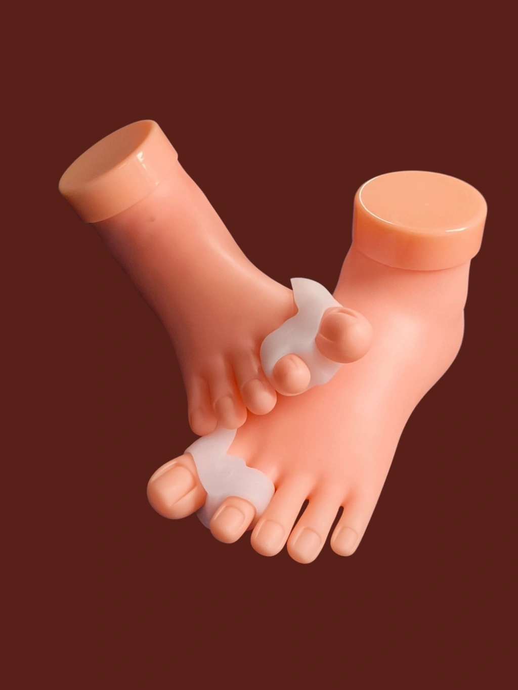 Baş parmak çıkıntısı (halluks valgus) nedeniyle yaşadığınız ağrıyı ve rahatsızlığı azaltmak için özel olarak tasarlanmış parmak arası silikon destek aparatı, ayak baş parmağınızı doğal pozisyonuna yönlendirerek deformasyonun ilerlemesini yavaşlatır. Medikal silikon malzemesi sayesinde gün boyu konforlu kullanım sağlar.