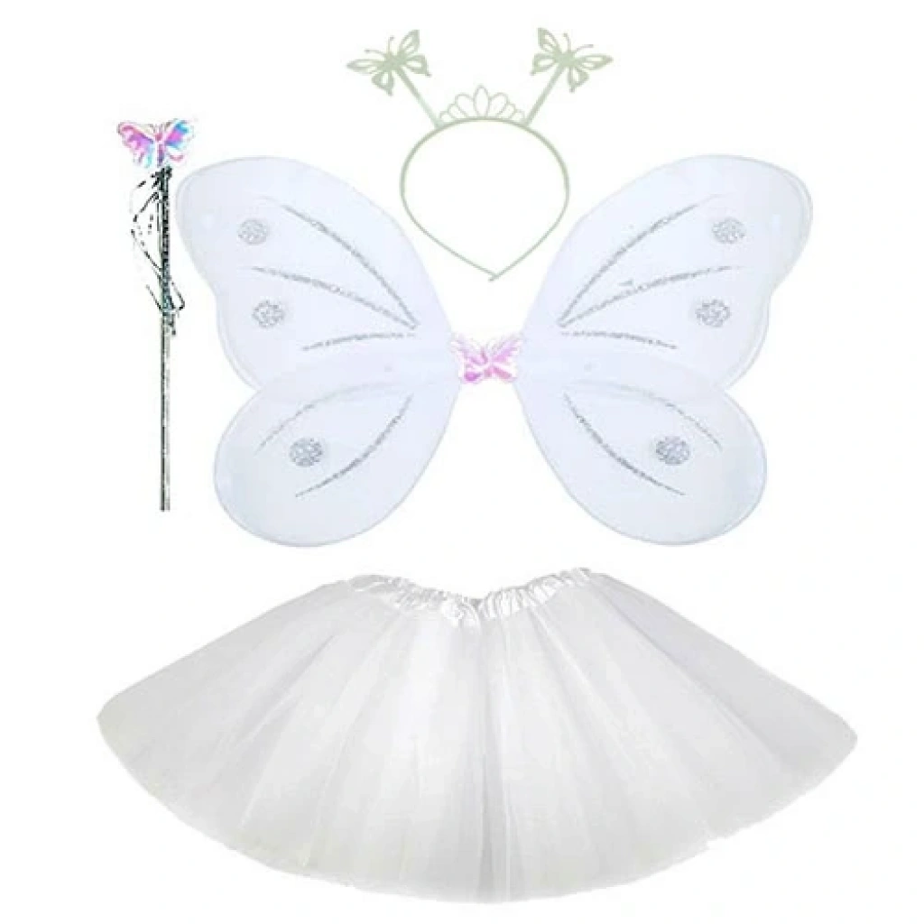 BEYAZ KELEBEK KOSTÜMÜ SETİ Ürün ÖzellikleriEtek Ölçüsü : 40 cmEtek beli lastikli olduğundan tüm çocuk yaşlara uyumludurPaket İçeriği1 Adet Tütü Kelebek Etek ( Astarlı )1 Adet Kelebek Kanadı1 Adet Kelebek Tacı1 Adet Kelebek Asası-Sopası