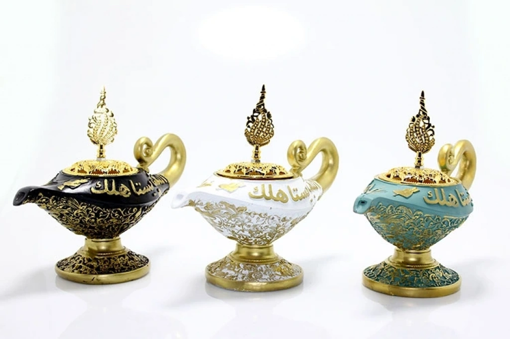ALAADDİN TÜTSÜ BRÜLÖRÜÜrün ÖzellikleriAlaaddin Tütsü Brülörü, polyester malzemeden üretilmiş şık ve dayanıklı bir tütsü yakma aksesuarıdır. 12x20 cm boyutlarında, kompakt tasarımıyla masa ve sehpa gibi alanlarda rahatça kullanılabilir. Alaaddin'in Lambası ve detaylı tasarımı ile nostaljik bir hava katar. Tütsü brülörünün kullanımı oldukça basittir ve hem dekoratif hem de işlevsel bir üründür. Evde rahatlatıcı bir atmosfer yaratmak için ideal bir aksesuardır. Ayrıca, tütsülerin yaydığı hoş kokuları alırken görsel olarak da estetik bir ortam oluşturur.Paket İçeriği1 adet Alaaddin Tütsü Brülörü