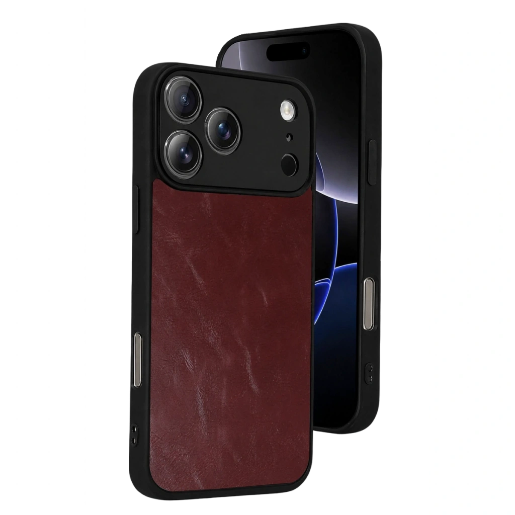 • Apple İphone 17 Pro Max Aras Deri Kapak - Bordo