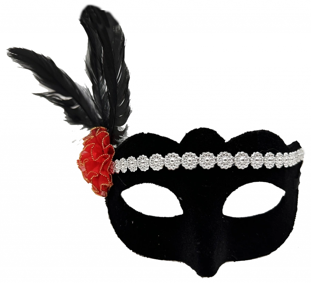 • Gümüş Dantelli Kırmızı Gül Tasarımlı Parti Maskesi