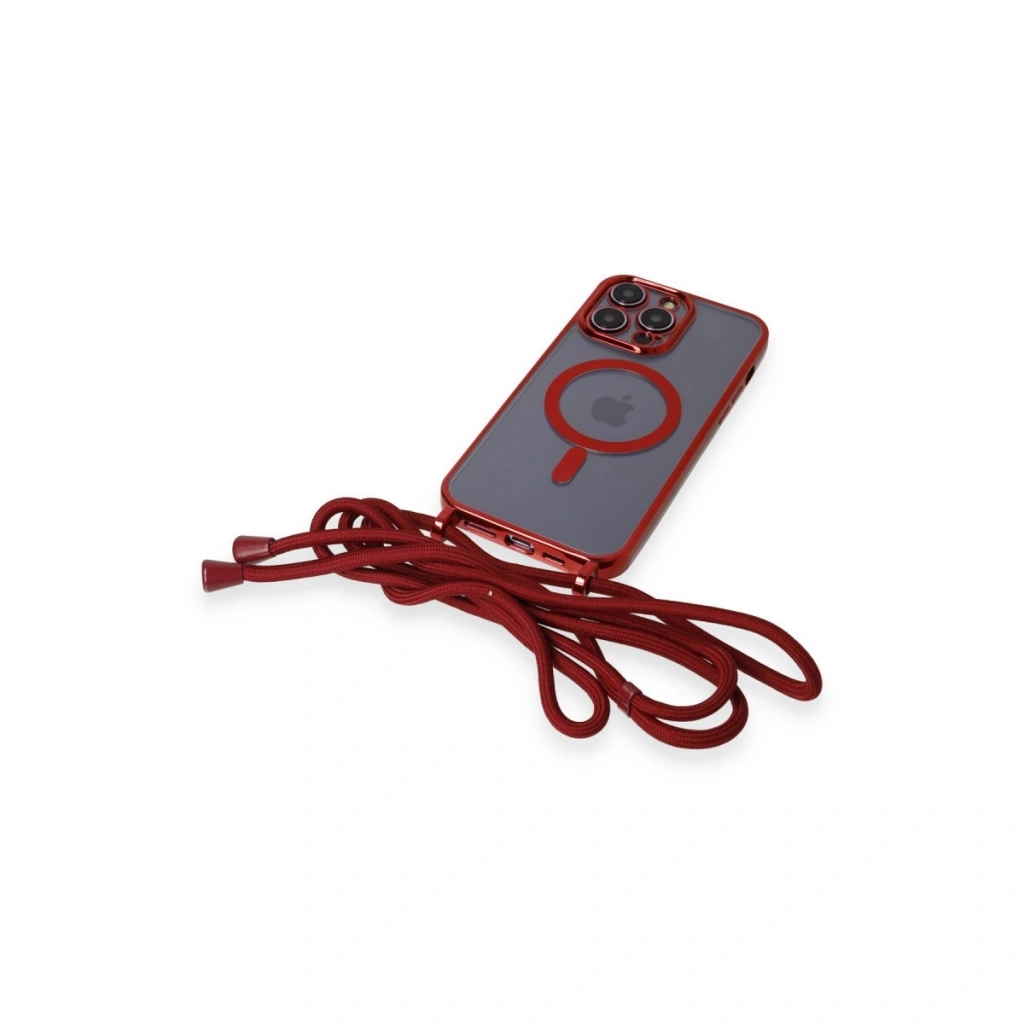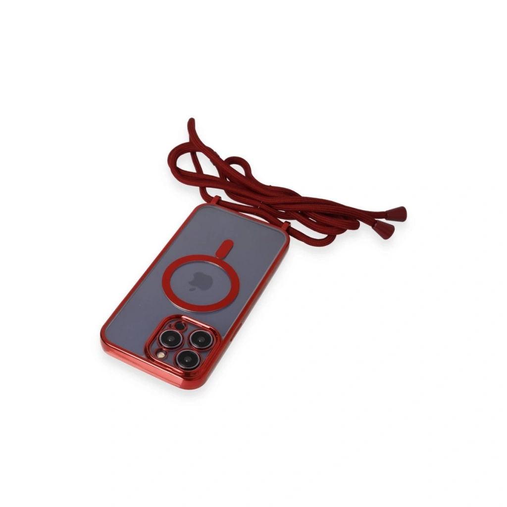 • İphone 12 Pro Kılıf Divo Lazer Askılı Magsafe Kapak - Kırmızı