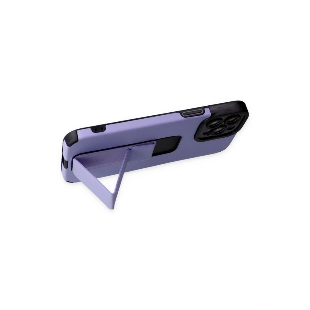 • İphone 12 Pro Max Kılıf Mega Standlı Silikon - Lila