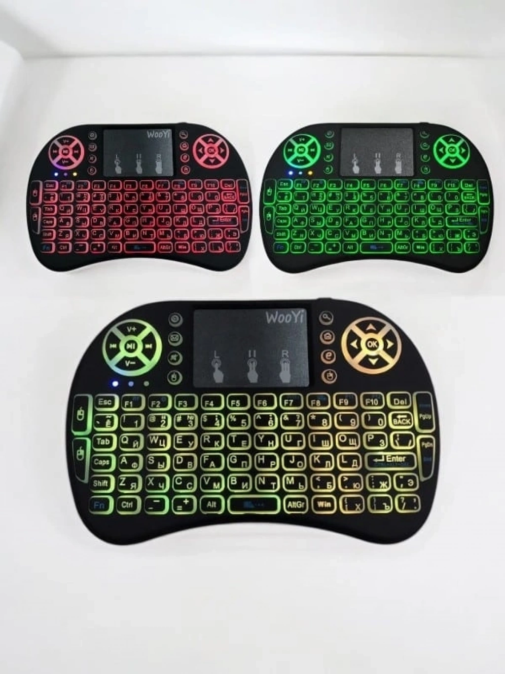 Mini Klavye  Işıklı Kablosuz Mini Klavye SmartTV Televizyon PS3 Dokunmatik Mouse Mini Kablosuz Dokunmatik Klavye Mouse 3 Renk olarak klavye ışıklıdır. Işığını açmak için FN + F2 tuşuna basarak renkler arasında geçiş yapabilirsiniz. Bilgisayarınıza, akıllı telefonunuza, tabletinize, televizyonunuza bağlanır. Ufacık boyutu ile yanınızda her yere taşıyabilirsiniz. Kullanımı kolaydır, kaliteli plastikten üretilmiştir. Sadece siyah mevcuttur. 2.4 GHz kablosuz bağlantı ile 10 metreye kadar kullanılabilir. Ürün Pillidir Dahili bataryası içinde mevcuttur. Windows, Android, Mac, Linux destekler PS3, XBOX360 destekler Özellikleri Voltaj: 3.3 V Çalışma akımı: 50mA Frekans: 2.4 GHz Kullanım mesafesi: 10 metreye kadar Ağırlık: 92gr (pilsiz) Boyutları: 14.7x9.8x2cm Kutu İçeriği 1 adet mini klavye 1 adet kullanım klavuzu 1 adet USB verici (klavyenin pil girişinin içindedir.)Kutu İçeriği 1 adet mini klavye 1 adet kullanım klavuzu 1 adet USB verici (klavyenin pil girişinin içindedir.)