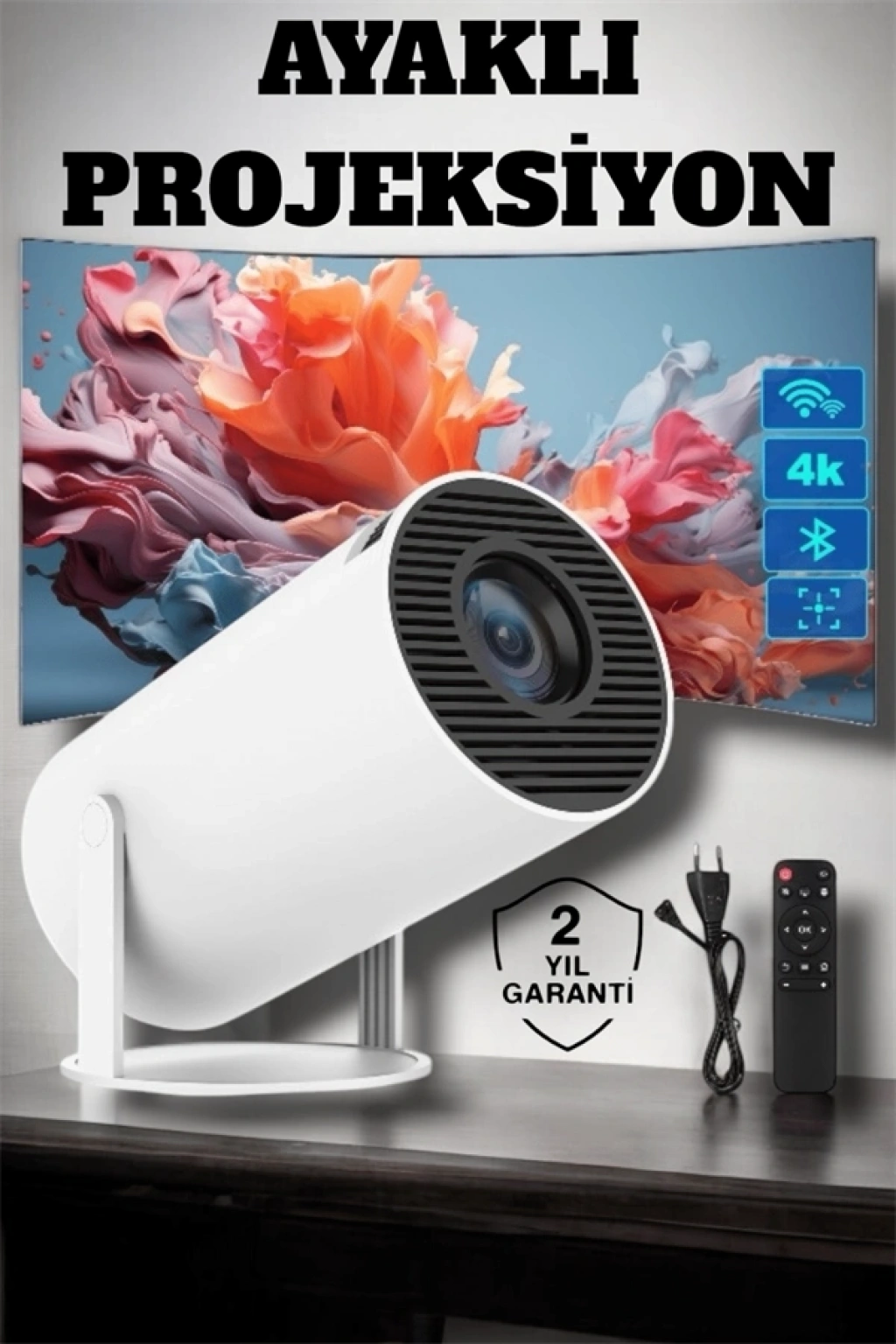 Sinema salonunu evinize getiren bu projeksiyon cihazı, Full HD görüntü kalitesi ve 130 inç geniş ekran desteğiyle izleme keyfinizi yeniden tanımlıyor. 4K uyumluluğu sayesinde en yeni teknolojileri desteklerken, 160 ANSI lümen parlaklık, karanlık ve aydınlık ortamlarda net bir görüntü sağlar. Kablosuz görüntü aktarım özelliği ile telefon, tablet veya bilgisayardan kolayca içerik aktarabilirsiniz.• Sinema Keyfi Evde: 130 inç ekran boyutu ile her filmi sinema salonunda izliyormuş gibi hissedin.• Full HD Çözünürlük ve 4K Uyumluluk: Göz alıcı görüntü kalitesi için üstün çözünürlük.• Kablosuz Görüntü Aktarımı: Mobil cihazlardan içeriklerinizi kolayca aktarın.• Dayanıklı ve Uzun Ömürlü: 5000 saat ampul ömrü ile yıllar boyunca kullanım imkanı.• Bağlantı Kolaylığı: HDMI ve USB bağlantı seçenekleri ile esnek kullanım.Bu cihaz, hem ev sineması keyfi yaşamak isteyenler hem de sunum ve toplantılarda profesyonel bir çözüm arayanlar için tasarlandı.