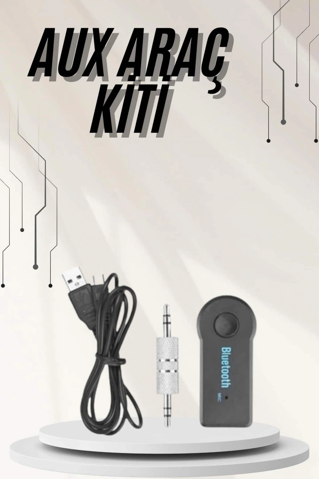 • Yeni Nesil Bluetooth Aux Araç Kiti Siyah TV Tablet Telefon Araç Araba