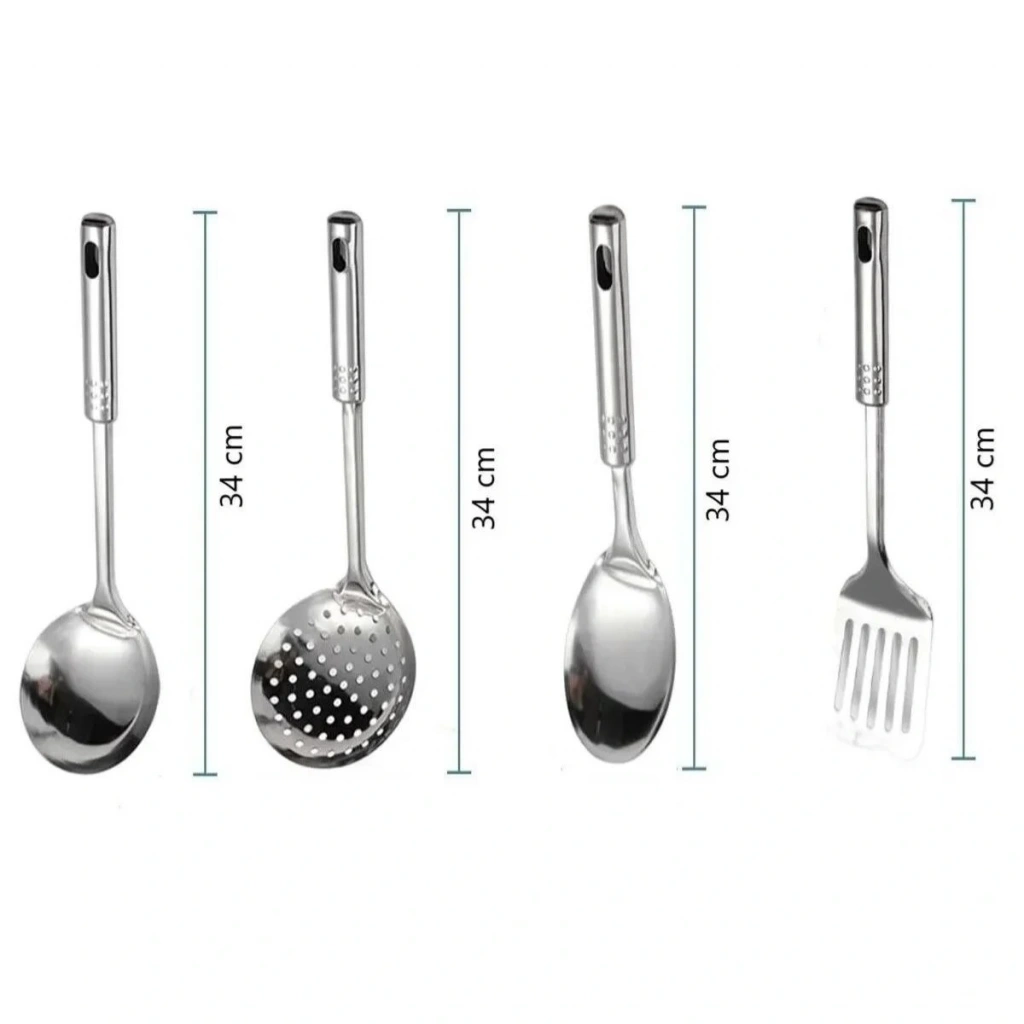 4’lü Çelik Kepçe, Süzgeç, Servis Kaşığı ve Spatula – Mutfak Yemek Hazırlama ve Servis Seti