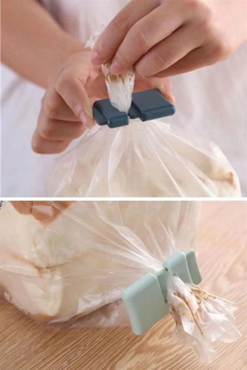 3) Çıkardığınız klipleri ağzı kapatılacak olan torba ya da poşetin uç kısımlarını bükerek bir araya getiriniz