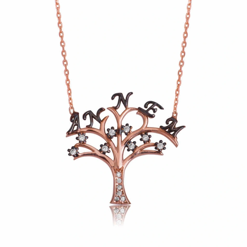 Hayatta en değerli varlığınız olan biricik anneniz için en güzel hediyelerden biri olan bu annem yazılı hayat ağacı bayan kolye ile hayat boyunca annenize olan sevginizin simgesi olacaktır. Annem yazılı hayat ağacı bayan kolye 925 ayar gümüşten imal edilmiştir. Gümüş üzerine rose kaplama yapılmıştır. Rose kaplama yapılan gümüş bayan kolye modelleri parlaklığını uzun süre muhafaza eder ve oksitlenmesi gecikir. Kolye üzerinde bulunan taşlar zirkondur. Gümüş olan zincir boyu ortalama 45 cm'dir. Tüm gümüş bayan kolye modellerinde olduğu gibi bu anlamlı annem yazılı hayat ağacı bayan kolye de el emeği ile üretilmiştir. Gümüş ve değerli taşlar nedeniyle belirtilen ürün ağırlığında ± %10 sapma olabilmektedir.