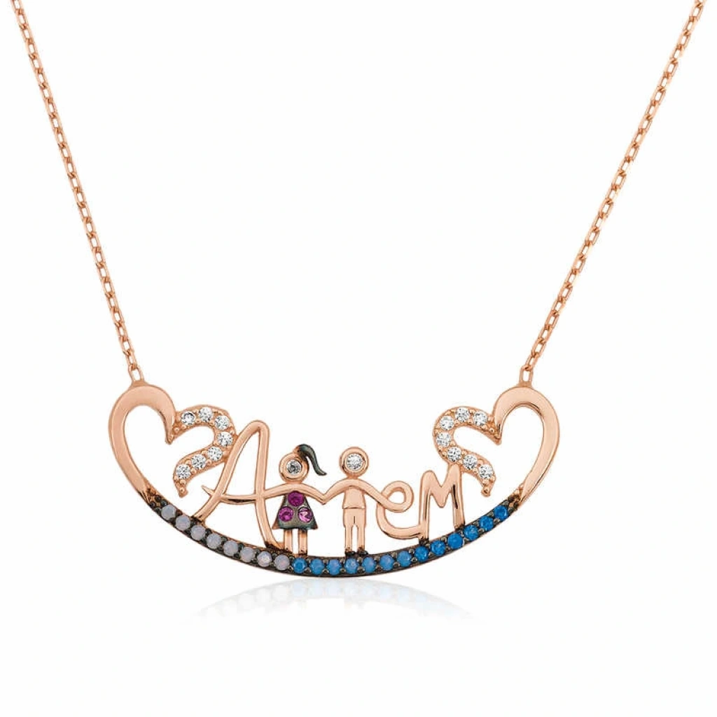 Hayatta en değerli varlığınız olan biricik anneniz için en güzel hediyeyi vermek istemeniz çok doğaldır. Çünkü anneniz sizin için hayatta ki en önemli varlıktır. Annenize duyduğunuz sonsuz sevginizi hissettirebileceğiniz bu özel kolye ile onu çok mutlu etmiş olacaksınız. Anneleri anmak ve onurlandırmak amacıyla tüm dünyada farklı zamanlarda kutlanan anneler gününde ona olan sevginizi bu anlamlı kolye ile gösterin. Gümüş annem kolye modeli 925 ayar gümüşten imal edilmiştir. Gümüş üzerine rose kaplama yapılmıştır. Rose kaplama yapılan gümüş kolye modelleri parlaklığını uzun süre muhafaza eder ve oksitlenmesi gecikir. Gümüş olan zincir boyu ortalama 45 cm'dir. Gümüş annem kolye modeli el emeği ile üretilmiştir. Gümüş ve değerli taşlar nedeniyle belirtilen ürün ağırlığında ± %10 sapma olabilmektedir.