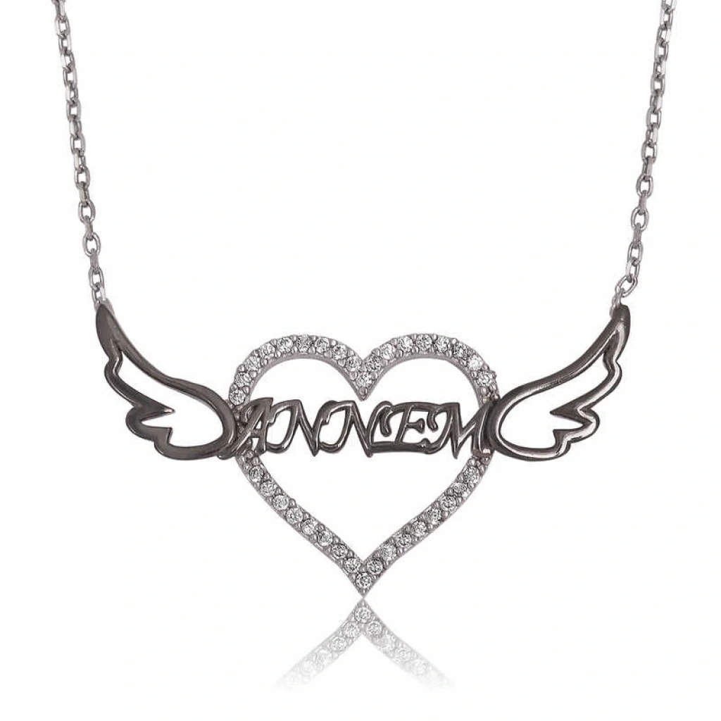Gümüş Annem Yazılı Kalp Kolye