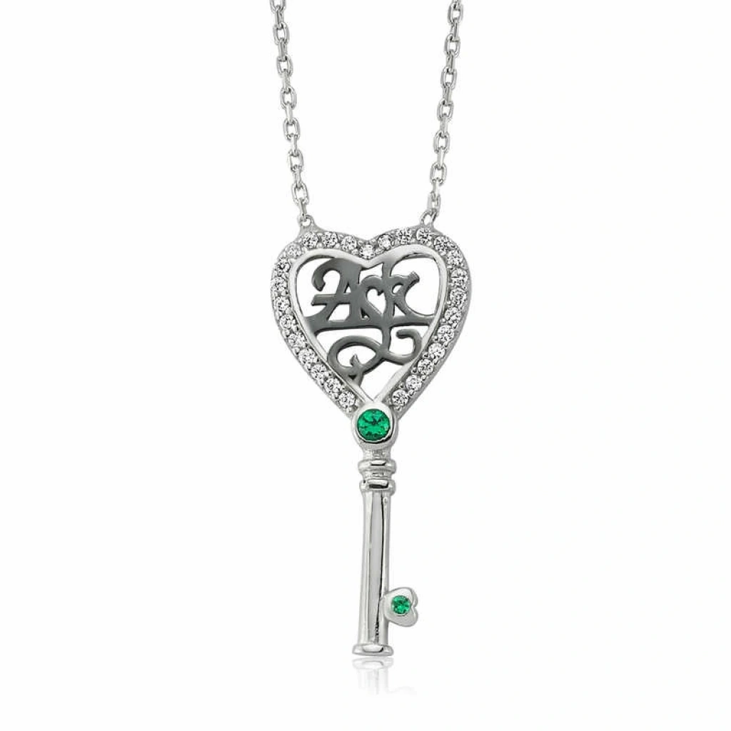 Anahtar sembolik bir anlama sahiptir, sevdiğiniz kişiye kalbinizin anahtarını verdiğiniz anlamına gelmektedir. Aksesuar olarak son derece şık bir tasarıma sahip olan bu kolye dilerseniz günlük hayatta dilerseniz davetlerde kullanabileceğiniz her kıyafetinize uyacak oldukça başarılı bir tasarımdır. Aşk yazılı anahtar bayan kolye 925 ayar gümüşten imal edilmiştir. Gümüş üzerine rodyum kaplama yapılmıştır. Rodyum kaplama yapılan gümüş bayan kolye modelleri parlaklığını uzun süre muhafaza eder ve oksitlenmesi gecikir. Kolye üzerinde bulunan taşlar zirkondur. Gümüş olan zincir boyu ortalama 45 cm'dir. Tüm gümüş bayan kolye modellerinde olduğu gibi gümüş aşk yazılı anahtar bayan kolye de el emeği ile üretilmiştir. Gümüş ve değerli taşlar nedeniyle belirtilen ürün ağırlığında ± %10 sapma olabilmektedir.