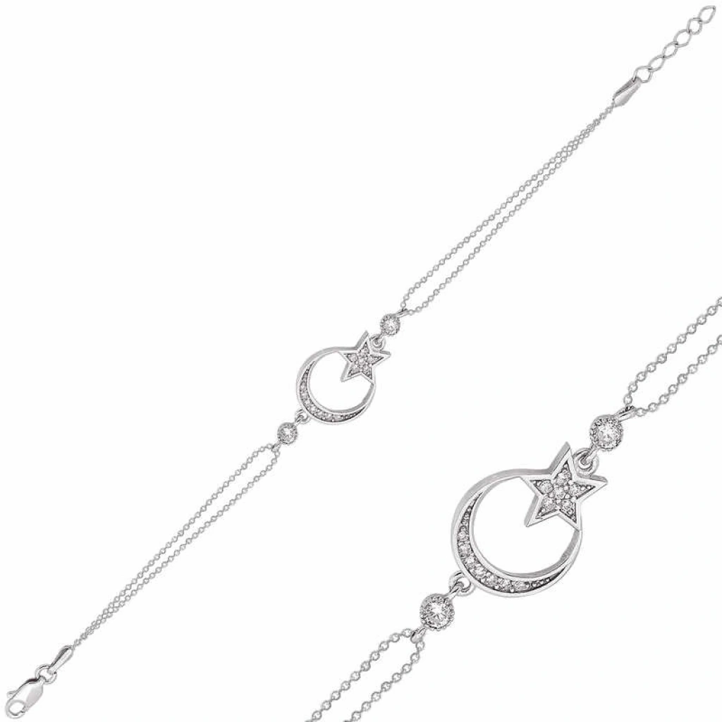 Gümüş Ay Yıldız Bayan Bileklik