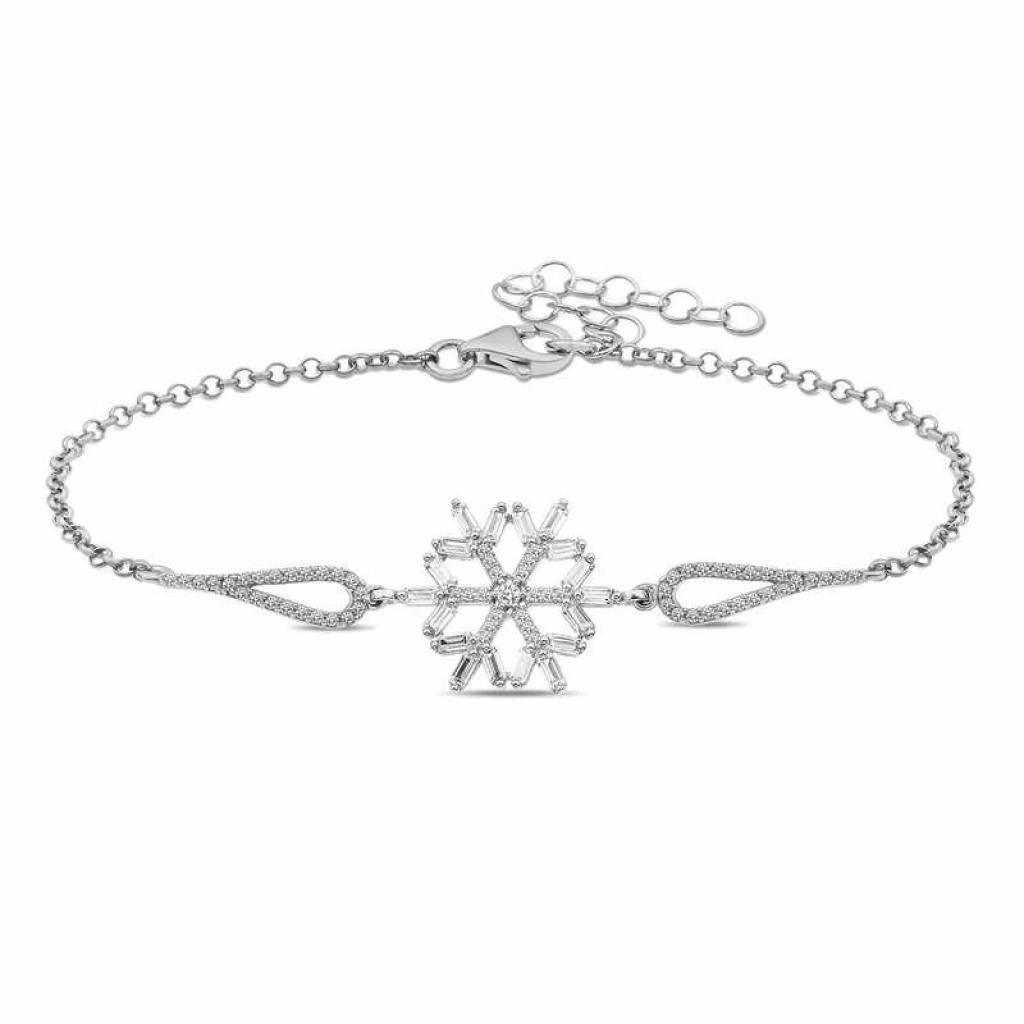 Gümüş Baget Taşlı Kar Tanesi Bileklik