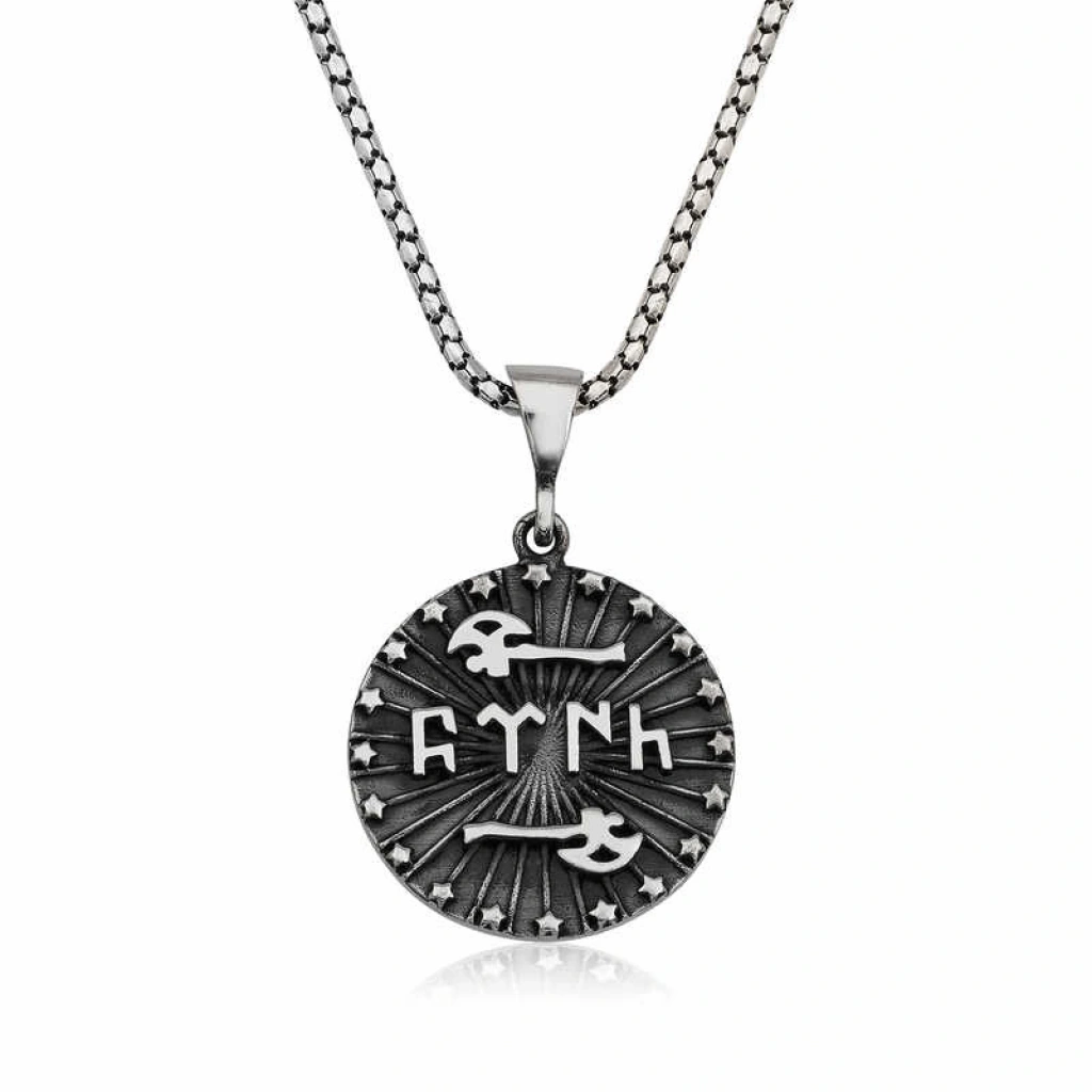 Gümüş Baltalı Türk Yazılı Kolye