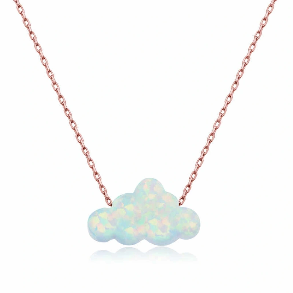 Gümüş Beyaz Opal Taş Bulut Kolye