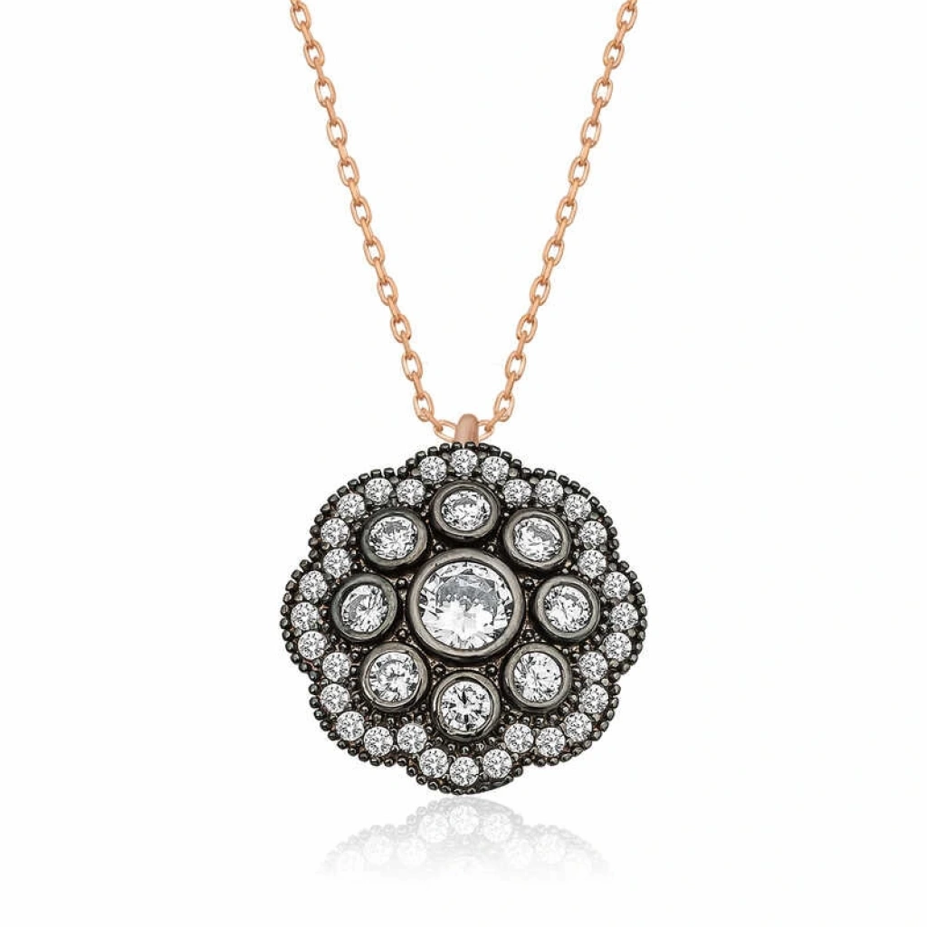 Gümüş Elmas Montür Çiçek Kolye