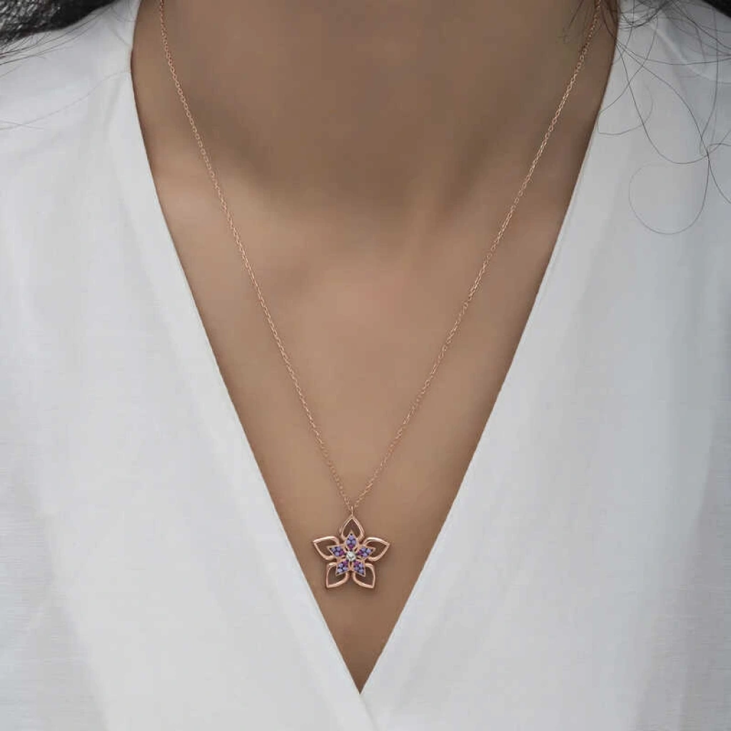 Sevdiklerinize duygularınızı ifade etmenin en özel ve zarif yolu O’na gönderebileceğiniz şık, rengarenk ve mis kokulu çiçeklerdir. Özel günlerde verilecek hediyeler arasında olan çiçek, bu kez farklı bir yorumla tasarlandı... Çiçek kolye sevgisini bir kez daha anlatmak isteyenleri, sen bir çiçeksin demek isteyenleri bekliyor. Bu özel tasarım, çiçek kadın kolye 925 ayar gümüşten imal edilmiştir. Gümüş üzerine rose kaplama yapılmıştır. Rose kaplama yapılan gümüş kadın kolye modelleri parlaklığını uzun süre muhafaza eder ve oksitlenmesi gecikir. Kolye üzerinde bulunan taşlar zirkondur. Tüm kadın gümüş kolye modellerinde olduğu gibi gümüş çiçek kadın kolye de el emeği ile üretilmiştir. Gümüş ve değerli taşlar nedeniyle belirtilen ürün ağırlığında ± %10 sapma olabilmektedir.