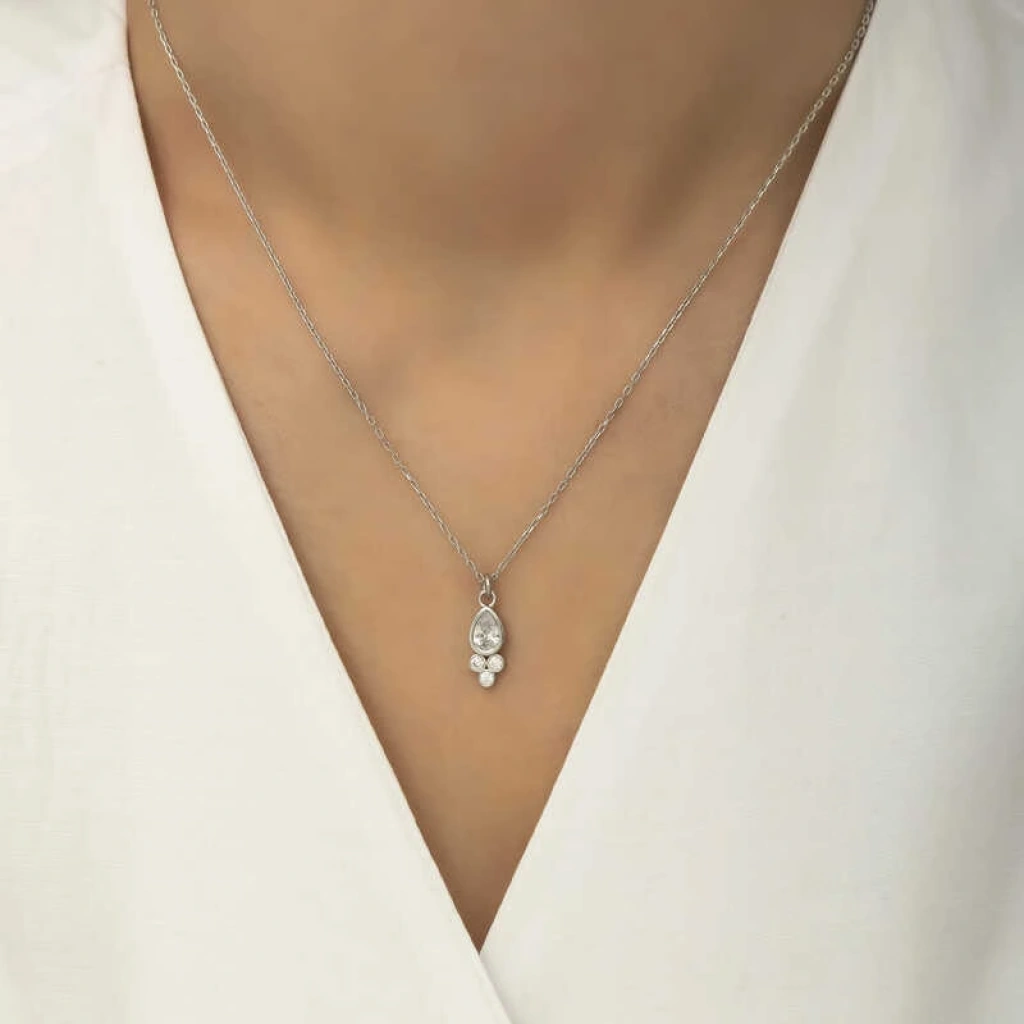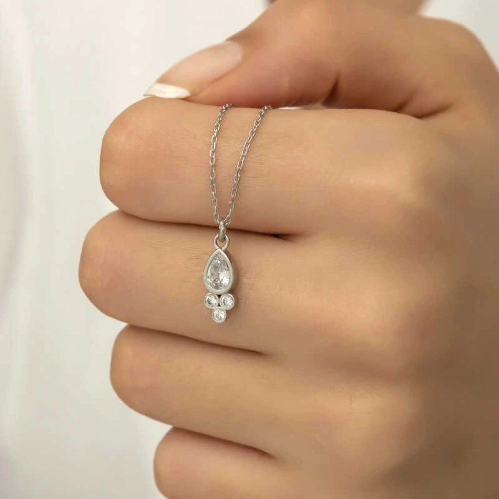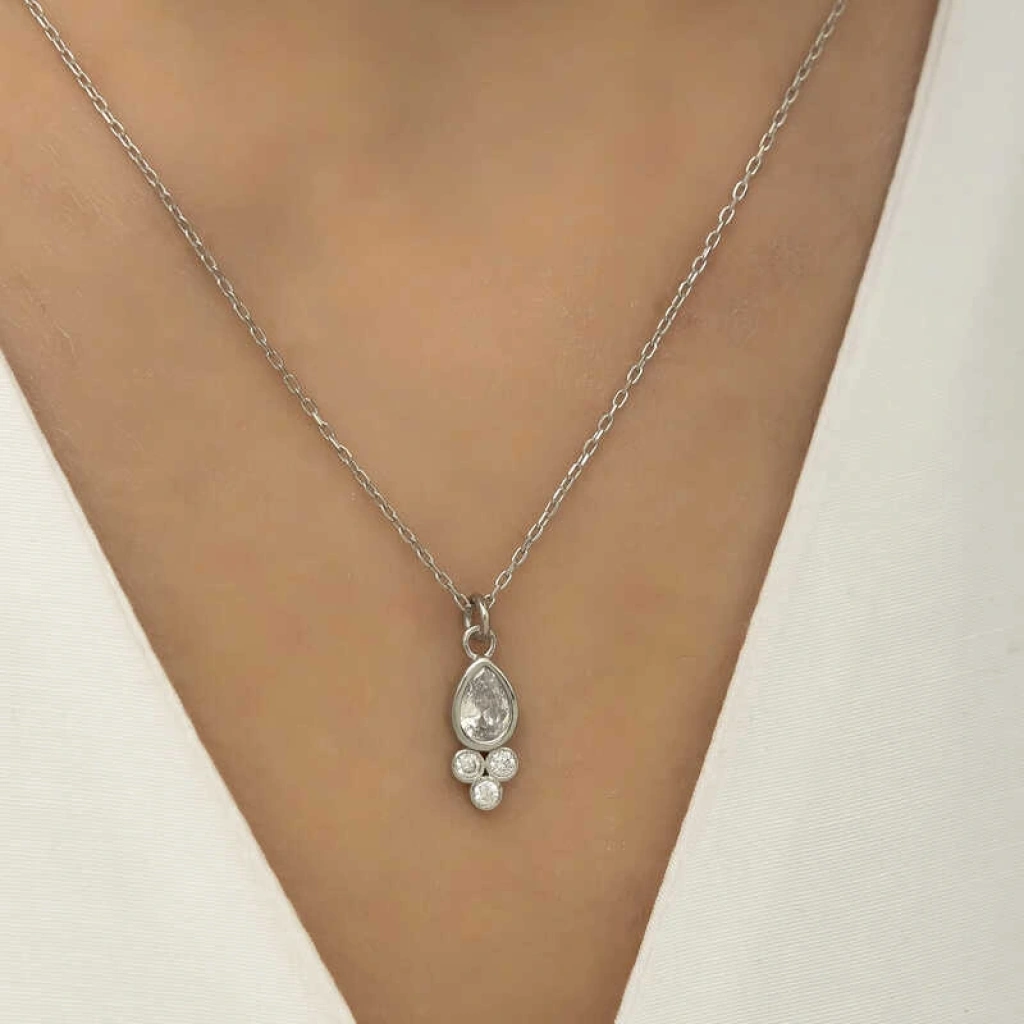 Gümüş Çiğ Damlası Tek Taş Kolye