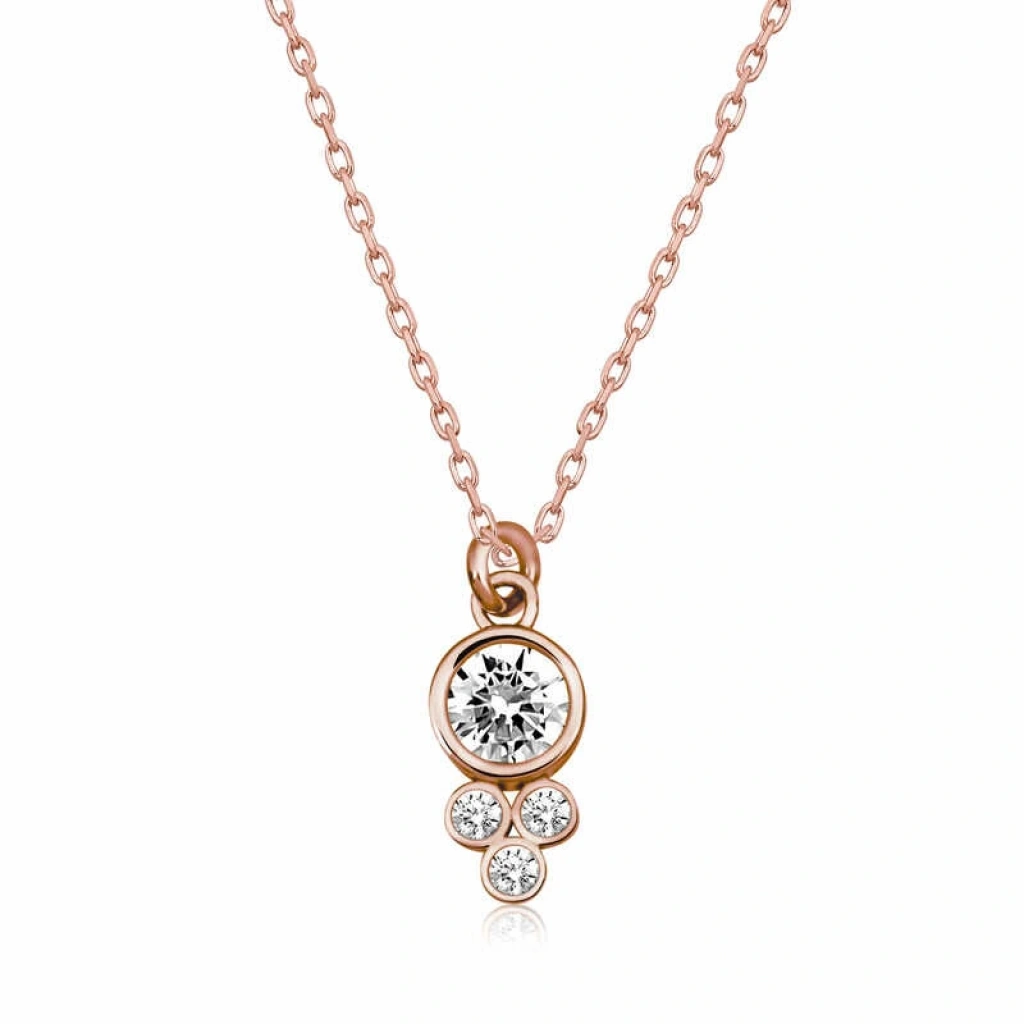 Gümüş Çiğ Damlası Yuvarlak Tek Taş Bayan Kolye