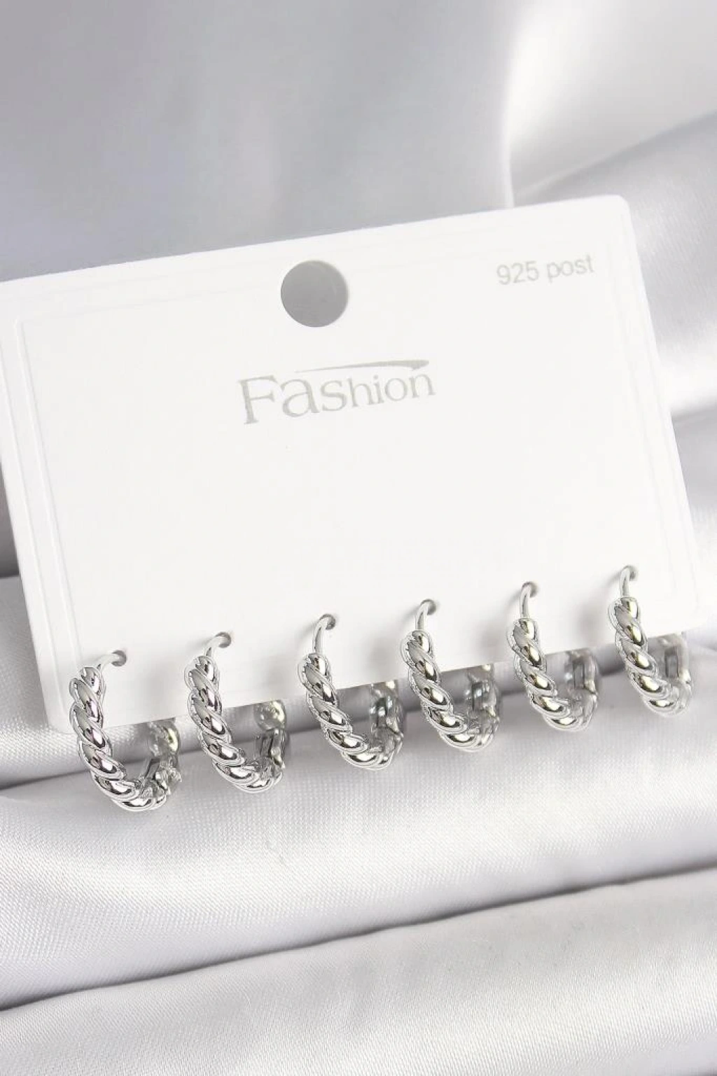 Byhodi 925 Ayar Gümüş Çivi Pirinç Gümüş Renk Sarmal Halka Model Kadın Küpe Seti - BKP10416 (599599)