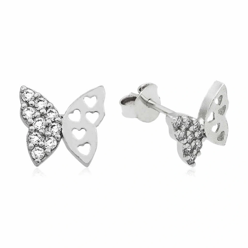 Gümüş Çivili Kelebek Küpe