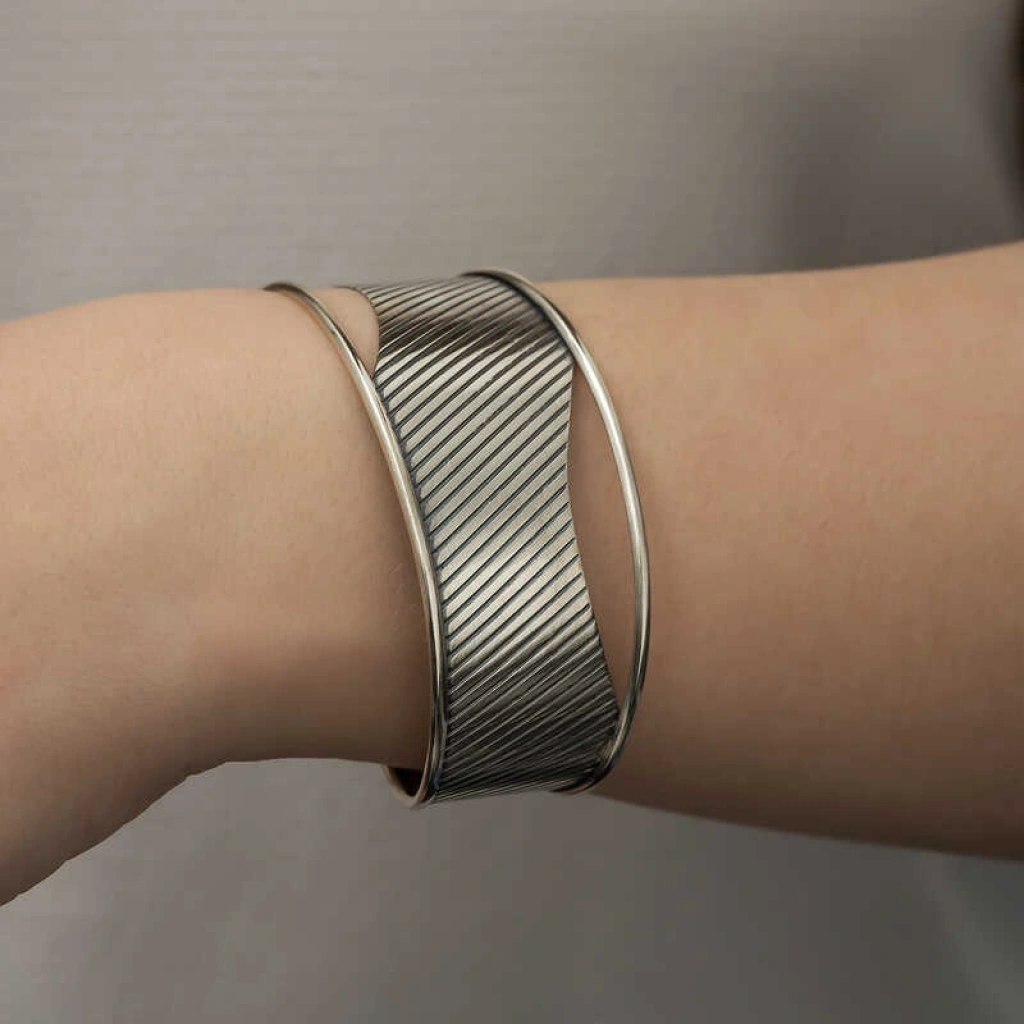 Şık ve fantezi görünümü seven kadınlar için ideal bir seçenektir. Koleksiyonlarda; gösteriş ve şıklığın peşinde olan kadınlar için tamamen el işçiliğiyşe yapılmış bu bilezik her zevke ve konsepte uygun modeli ile sizleri bekliyor. Bu şık modeli; doğum günü hediyesi, sevgililer günü hediyesi olarak özel günlerde tercih edebilirsiniz. Eskitme desenli bayan bilezik modeli 925 ayar gümüşten imal edilmiştir. Gümüş üzerine rodyum kaplama yapılmıştır. Rodyum kaplama yapılan gümüş bayan bilezik modelleri parlaklığını uzun süre muhafaza eder, oksitlenmesi gecikir. Tüm gümüş bayan bilezikler de olduğu gibi bu gümüş eskitme desenli bayan bilezik modeli de el emeği ile üretilmiştir. Gümüş ve değerli taşlar nedeniyle belirtilen ortalama ürün ağırlığında ± %10 sapma olabilmektedir.