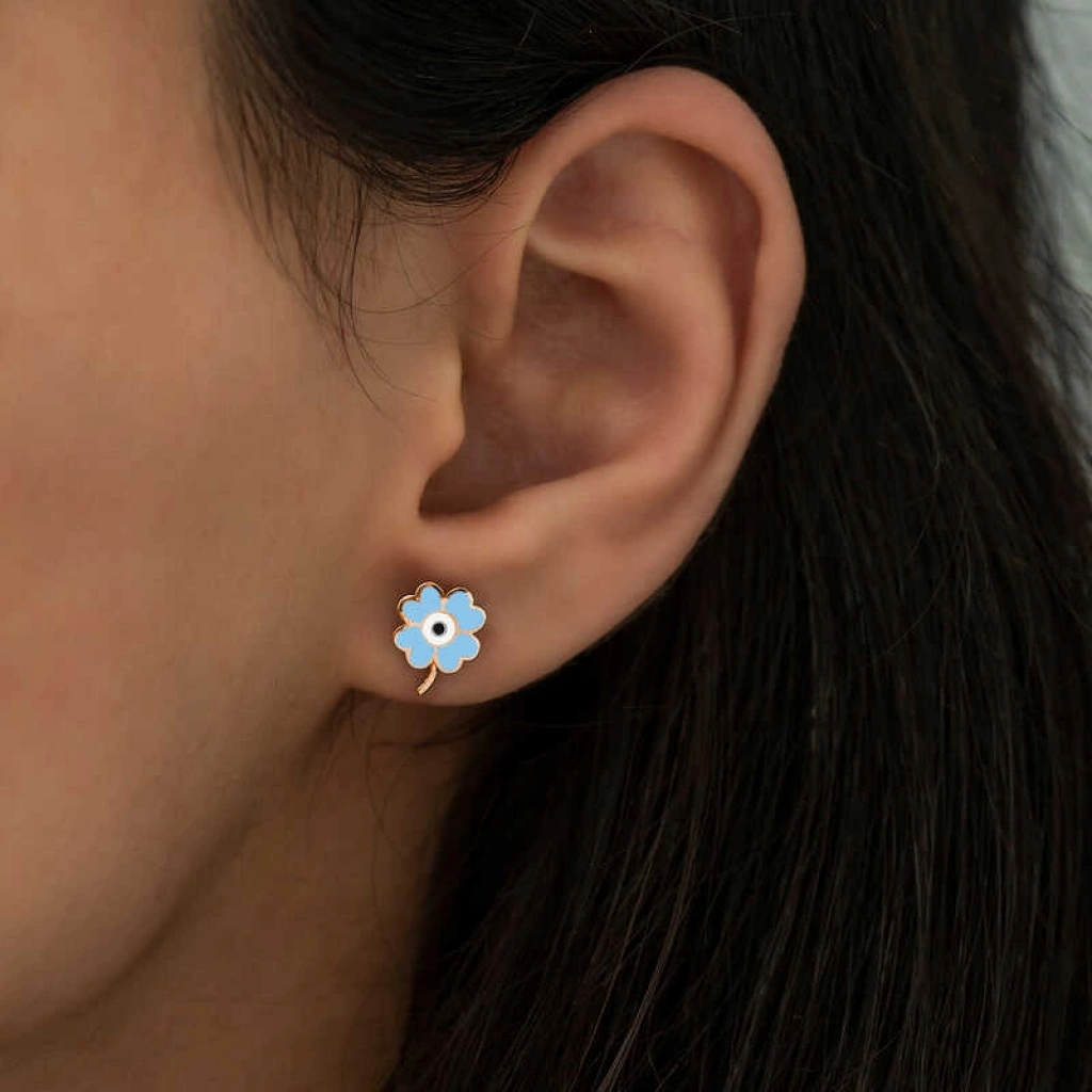 Gümüş Fosforlu Mavi Yonca Küpe