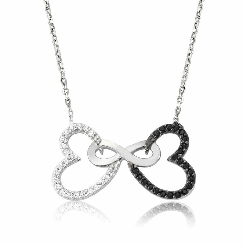 Gümüş İki Kalp Sonsuzluk Kadın Kolye