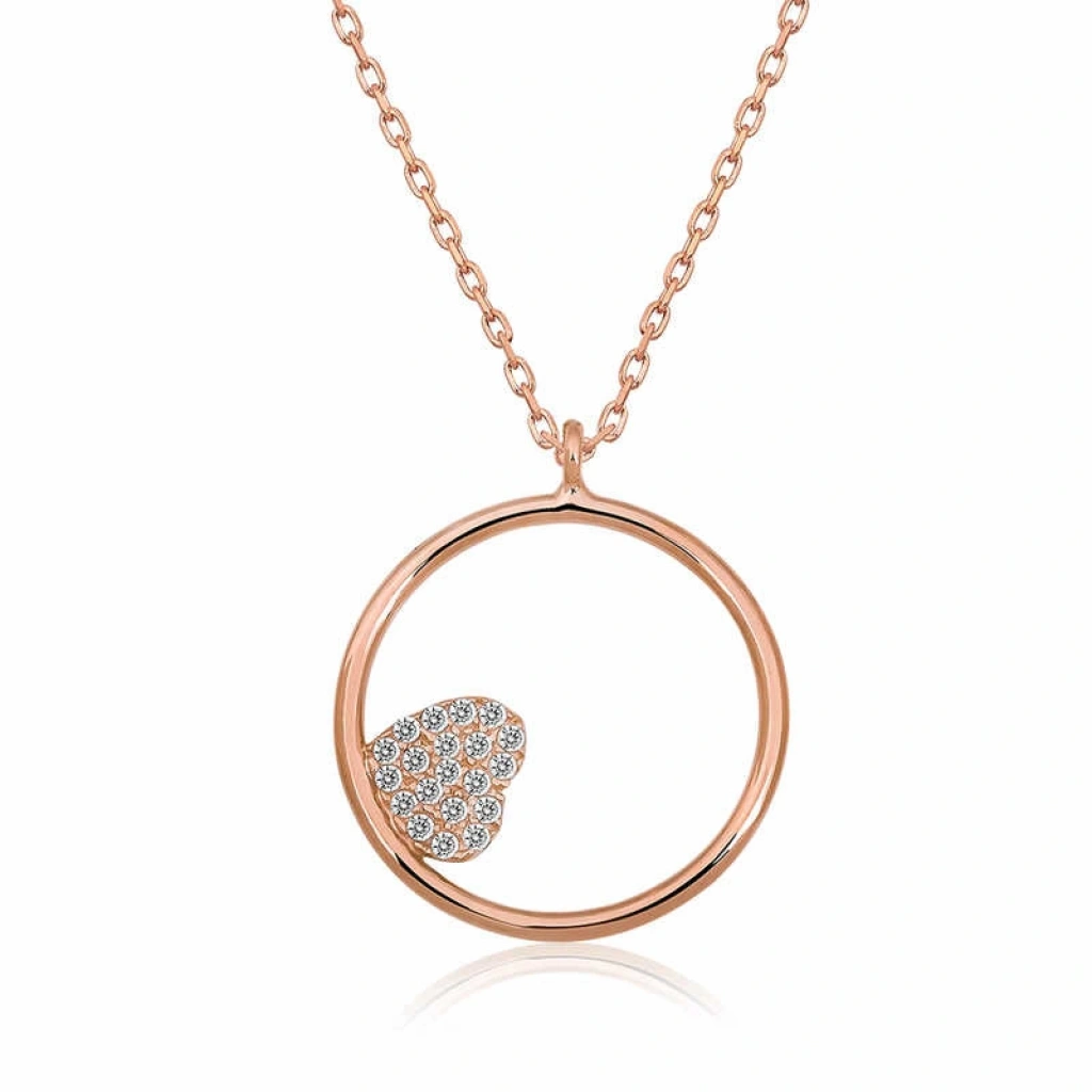 Kalp simgesi daima koşulsuz sevginin ve aşkın sembolü olmuştur. Dini öğretilerde ise kalbin gücü sınırsızdır. Çünkü kalp Yaradanın evi, bizim ise evrene açılan gerçeklik kapımızdır. Bu şık gümüş kalp detaylı halka kolye; doğum günü hediyesi, sevgililer günü hediyesi veya annelere hediye olarak özel günlerde tercih edilebilecek mükemmel bir seçenektir. Gümüş kalp detaylı halka kolye 925 ayar gümüşten imal edilmiştir. Bu kolye üzerinde rose kaplama yapılmıştır. Rose kaplama yapılan gümüş kolye modelleri parlaklığını uzun süre muhafaza eder. Üzerinde bulunan taşlar zirkondur. Tüm gümüş kolye modellerimizde olduğu gibi gümüş kalp detaylı halka kolye modeli de el emeği ile üretilmiştir. Gümüş ve değerli taşlar nedeniyle belirtilen ortalama ürün ağırlığında ± %10 sapma olabilmektedir.