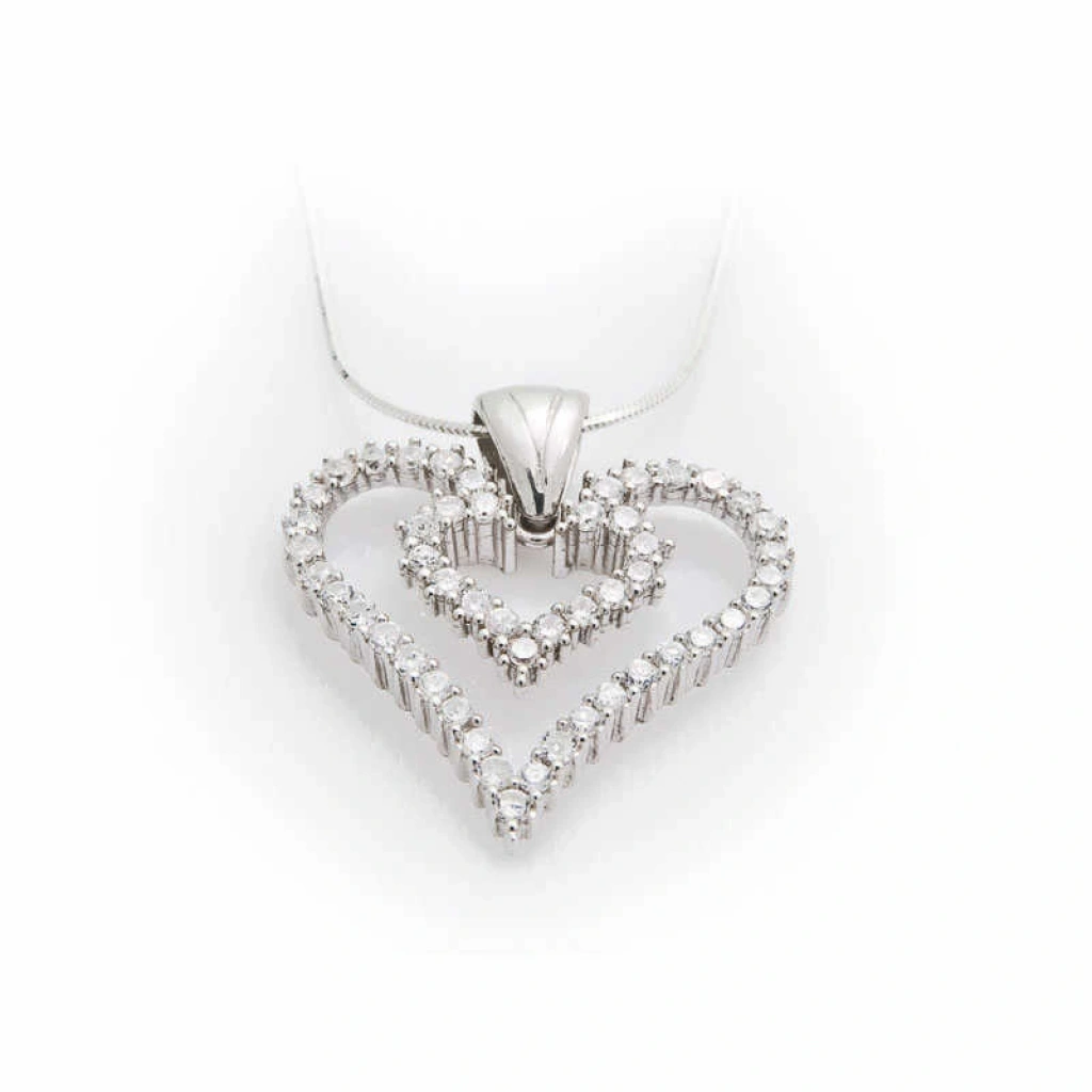 Kalp deseniyle aşkı ifade eden gümüş kalpli  kolye modeli ile sevginiz, sevdiğiniz kadının teninde hayat bulsun. Genç sevgililerin ve kendini genç hissedenlerin özel günlerde seçebileceği bu kalpli  kolye modeli ile sevdiğinizin boynunu aşkla süsleyin. Sizin olduğu kadar sevdiklerinizin de keyifle takacağı kalp desenli kolye modeli sevdiğinize en güzel hediyelerden biri olacaktır. Kalpli  kolye modeli 925 ayar gümüşten imal edilmiştir. Gümüş üzerine rodyum kaplama yapılmıştır. Rodyum kaplama yapılan gümüş  kalpli kolye modelleri parlaklığını uzun süre muhafaza eder ve oksitlenmesi gecikir. Kolye üzerinde bulunan beyaz taşlar zirkondur. Gümüş olan zincir boyu ortalama 45 cm'dir. Tüm  kolye modellerinde olduğu gibi gümüş kalpli  kolye modeli de el emeği ile üretilmiştir. Gümüş ve değerli taşlar nedeniyle belirtilen ortalama ürün ağırlığında ± %10 sapma olabilmektedir.