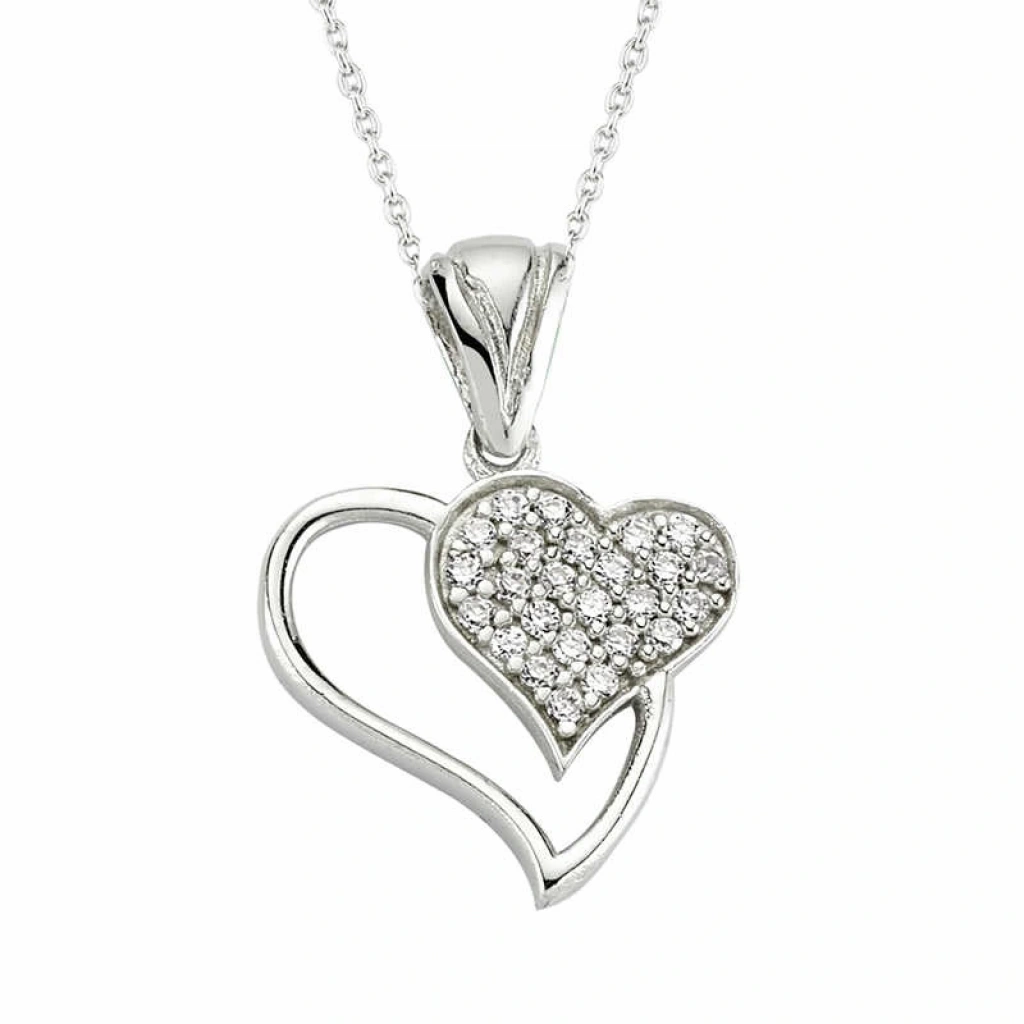 Gümüş Kalpli  Kolye İç içe iki kalpten oluşan bu şık kalpli  kolye modeli 925 ayar gümüşten imal edilmiştir. Gümüş üzerine rodyum kaplama yapılmıştır. Rodyum kaplama yapılan gümüş bayan kalpli kolye modelleri parlaklığını uzun süre muhafaza eder ve oksitlenmesi gecikir. Kolye ile birlikte gelecek gümüş olan zincir uzunluğu 45 cm’dir. Tüm kolye modellerinde olduğu gibi gümüş kalpli  kolye modeli de el emeği ile üretilmiştir. Gümüş ve değerli taşlar nedeniyle belirtilen ortalama ürün ağırlığında ± %10 sapma olabilmektedir.