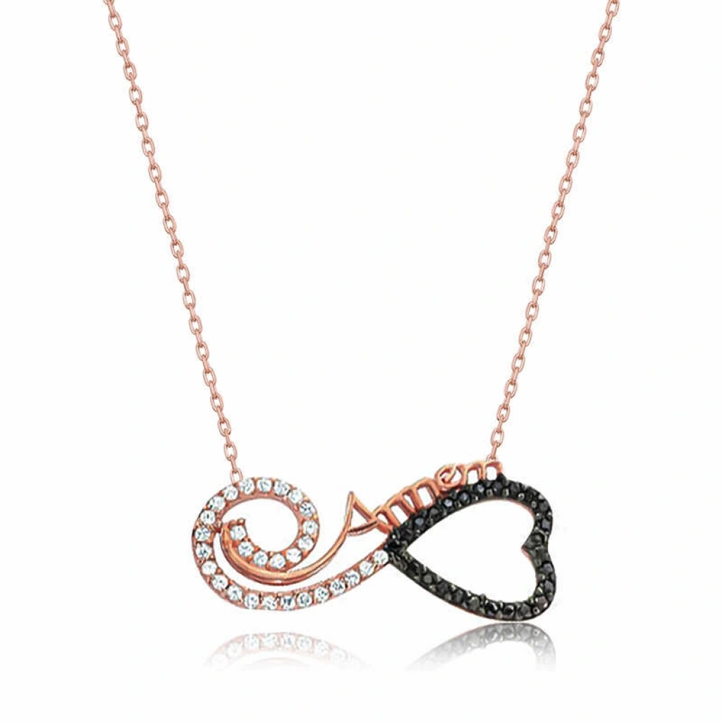 Hayatta en değerli varlığımız olan biricik anneniz için en güzel hediyeyi vermek istemeniz çok doğaldır. Çünkü anneniz sizin için hayattaki en önemli varlıktır. Annenize duyduğunuz sonsuz sevginizi hissettirebileceğiniz bu özel gümüş kalpli sonsuzluk annem kolye ile hem onu çok mutlu edeceksiniz, hem de güzel bir hediyeyle taçlandırmış olacaksınız. Gümüş kalpli sonsuzluk annem kolye üzerine rose kaplama yapılmıştır. Rose kaplama yapılan gümüş bayan kolye modelleri parlaklığını uzun süre korur. 925 ayar gümüşten imal edilmiş kalpli sonsuzluk annem kolye üzerinde bulunan beyaz ve siyah taşlar zirkondur. Tüm bayan kolye modellerinde olduğu gibi gümüş kalpli sonsuzluk annem yazılı kolye de el emeği ile üretilmiştir. Gümüş ve değerli taşlar nedeniyle belirtilen ürün ağırlığında ± %10 sapma olabilmektedir.