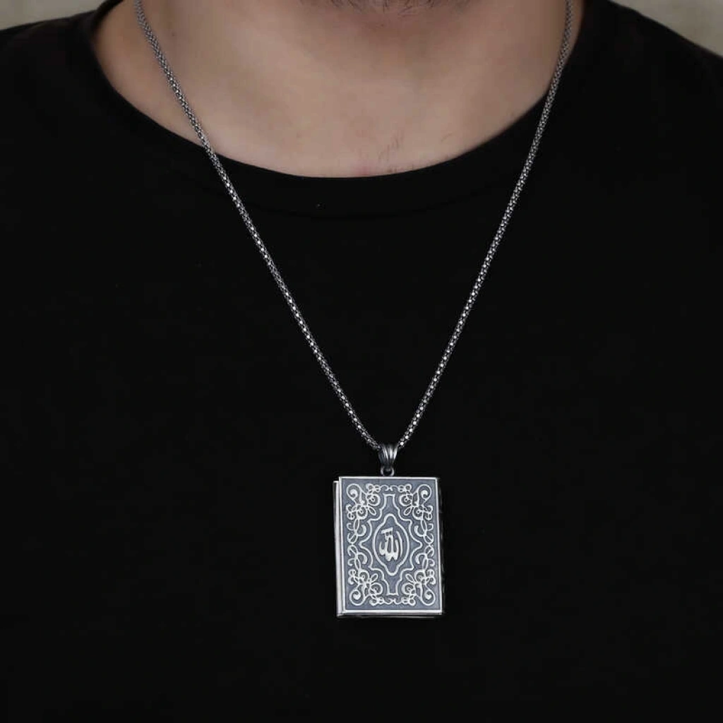 Din, manevi bir tarafı olan inanca dayalı bir sistemdir. Allah, bütün kâinatın ve canlı cansız bütün varlıkların mutlak ve tek yaratıcısıdır. Bu düşüncelere sahip inançlı insanların üzerinde taşımak isteyebilecekleri, günlük hayatta yanlarından ayırmayacakları özel bir aksesuardır. Bu şık kolye modeli manevi duyguları ifade etmenin anlamlı bir yolu olacaktır. Şık bir tasarıma sahip bu kolye size ve sevdiklerinize huzur verecek. Üzerinde arapça içi açılabilen Allah muskalık kolye 925 ayar gümüşten imal edilmiştir. Gümüş üzerine oksit kaplama yapılmıştır. Oksit kaplama yapılan gümüş kolye modelleri parlaklığını uzun süre muhafaza eder ve oksitlenmesi gecikir. Gümüş olan zincir boyu ortalama 55 cm'dir. Tüm gümüş kolye modellerinde olduğu gibi gümüş içi açılabilen Allah muskalık kolye modeli de el emeği ile üretilmiştir. Gümüş ve değerli taşlar nedeniyle belirtilen ürün ağırlığında ± %10 sapma olabilmektedir.