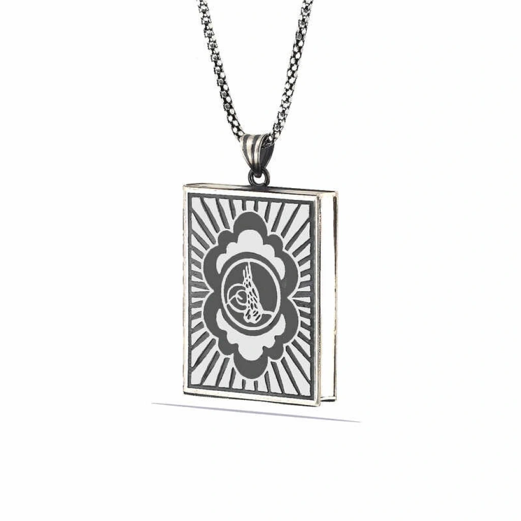 Gümüş Kare İçi Açılabilen Tuğra Muskalık Kolye