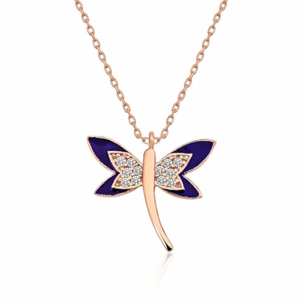Yusufçuk, bağlılığın, sadakatin, tek eşliliğin sembolüdür... Ölüme rağmen aşkından vazgeçmez yusufçuk... Doğa gereği, erkek yusufçuk ile dişi yusufçuğun çiftleşmesinin ardından erkek yusufçuk ölmektedir. Sonunda ölüm olduğunu bile bile erkek yusufçuk, hayatı boyunca tek bir dişi ile çiftleşiyor ve bundan asla vazgeçmiyor... Kolye, böyle hüzün ve sadakat kokan bu güzellikten ilham alarak tasarlanmıştır... Bu zarif kolye; doğum günü hediyesi, sevgililer günü hediyesi veya özel günlerde tercih edilebilecek müthiş bir kolyedir. Bu şık tasarım 925 ayar gümüşten imal edilmiştir. Gümüş üzerine rose kaplama yapılmıştır. Rose kaplama yapılan kolyeler parlaklığını uzun süre muhafaza eder, gümüş rengini pembe renge dönüştürür ve oksitlenmesini geciktirir. Kolye üzerinde bulunan taşlar zirkondur. Tüm gümüş kolyelerde olduğu gibi gümüş lacivert yusufçuk kolye de el emeği ile üretilmiştir. Gümüş ve değerli taşlar nedeniyle belirtilen ürün ağırlığında ± %10 sapma olabilmektedir.