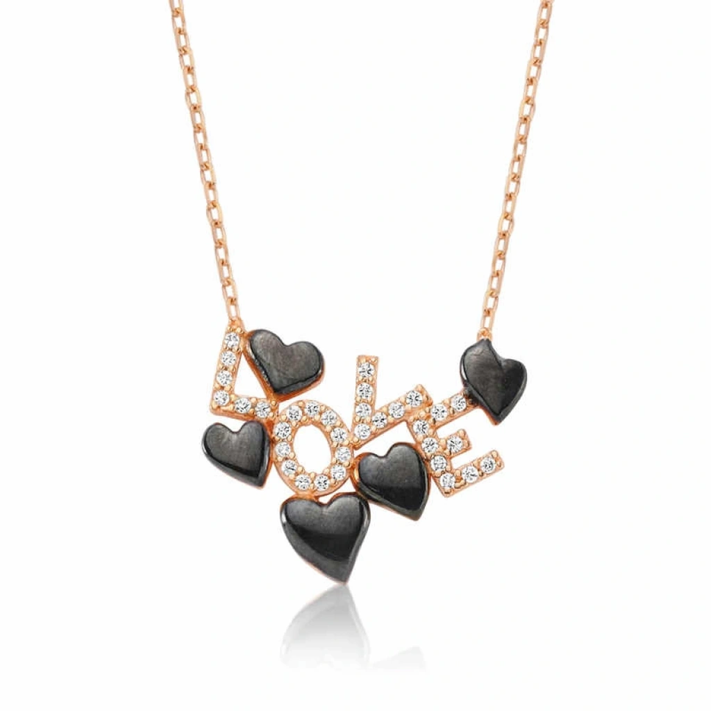 Aşkın ve sevginin simgesi kalpli love yazılı kolye ile sevdiğiniz kişiye alabileceğiniz en anlamlı hediyelerden biri olacaktır. Bu şık tasarımıyla ve taşıdığı anlam itibari ile sevdiklerinizi özel hissettirin. Kalpli love yazılı kolye 925 ayar gümüşten imal edilmiştir. Gümüş üzerine rose altın kaplama yapılmıştır. Rose altın kaplama yapılan gümüş kolye modelleri parlaklığını uzun süre muhafaza eder ve oksitlenmesi gecikir. Gümüş love yazılı kalpli kolye üzerinde bulunan beyaz taşlar zirkondur. Gümüş olan zincir boyu ortalama 45 cm'dir. Gümüş love yazılı kalpli kolye diğer tüm gümüş kolye modellerinde olduğu gibi el emeği ile üretilmiştir. Gümüş ve değerli taşlar nedeniyle belirtilen ürün ağırlığında ± %10 sapma olabilmektedir.