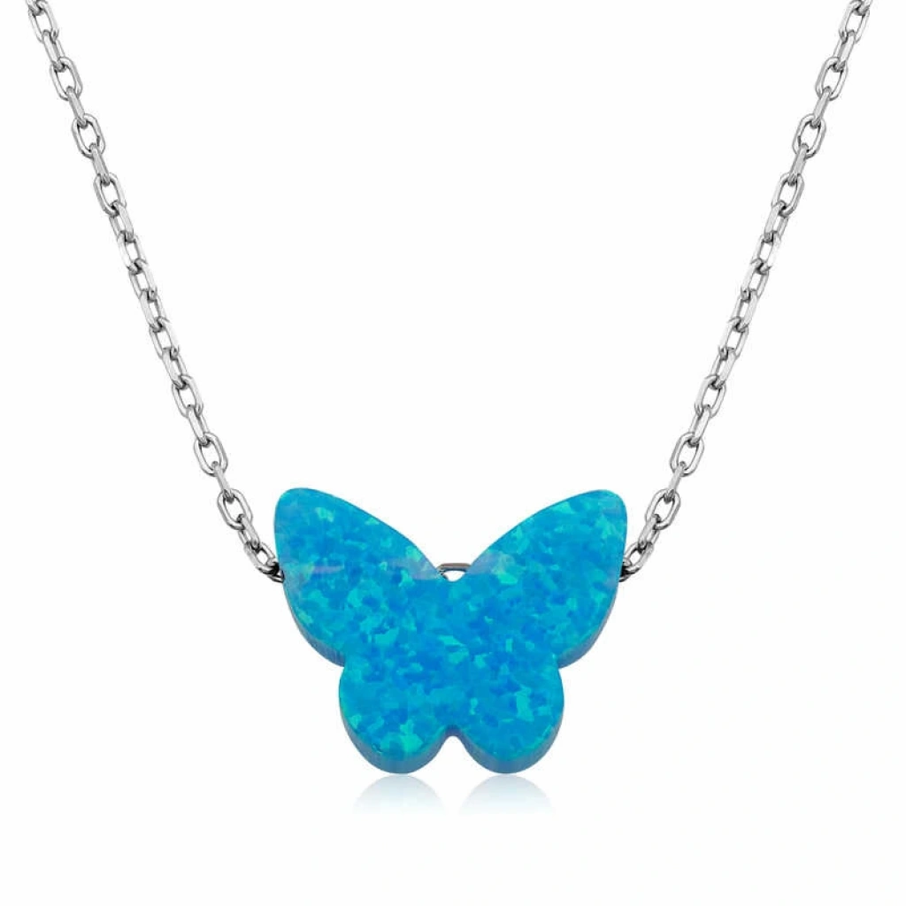 Gümüş Mavi Opal Taş Kelebek Kolye