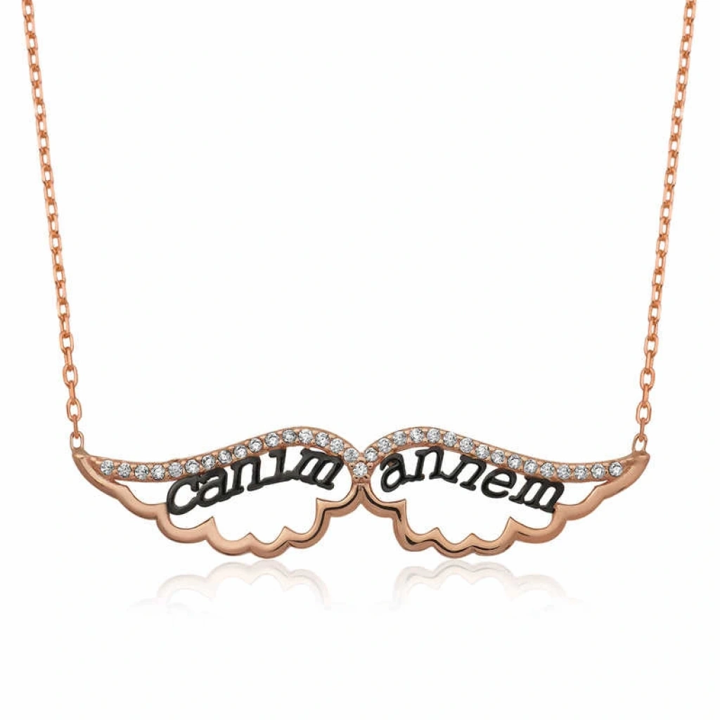 Saf ve tertemiz annelerimiz tıpkı melekler gibidir... Melek annelerimiz için tasarlanan bu şık kolye; anneler günü, doğum günü yada özel günlerde hediye ederek onları mutlu edebilirsiniz... Bu özel melek canım annem tasarımı 925 ayar gümüşten imal edilmiştir... Tasarım melek canım annem kolye üzerinde bulunan taşlar zirkondur. Bu gümüş kolye üzerine rose kaplama yapılmıştır. Rose kaplama yapılan tüm kolyeler parlaklığını uzun süre muhafaza eder, gümüşe pembe rengini verir ve oksitlenmeyi geciktirir. Zincir boyu ortalama 45 cm'dir. Tüm gümüş kolyelerde olduğu gibi bu gümüş melek canım annem kolye de el emeği ile üretilmiştir. Gümüş ve değerli taşlar nedeniyle ürün ağırlığında ± %10 sapma olabilmektedir.