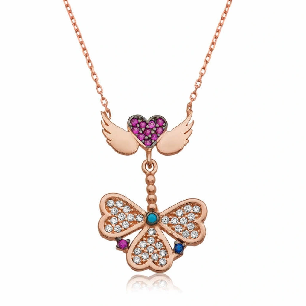 Saflığı ve masumiyeti simgeleyen melek figürlü aksesuarlar sevdiğiniz kişiler için alınabilecek en güzel hediye seçeneklerinden biridir. Kanat ve melek figürlü kolye ile hayatınız da değer verdiğiniz mutlu etmek istediğiniz sevdiklerinizi, meleklere layık bir hediye ile sevindirin. Bu şık kolye modeli 925 ayar gümüşten imal edilmiştir. Gümüş üzerine rose kaplama yapılmıştır. Rose kaplama yapılan gümüş kolyeler parlaklığını uzun süre muhafaza eder. Gümüş melek kanatlı yonca kolye modelinde olduğu gibi bayan kolyelerin tamamı el emeği ile üretilmiştir. Gümüş ve değerli taşlar nedeniyle belirtilen ortalama ürün ağırlığında ± %10 sapma olabilmektedir.