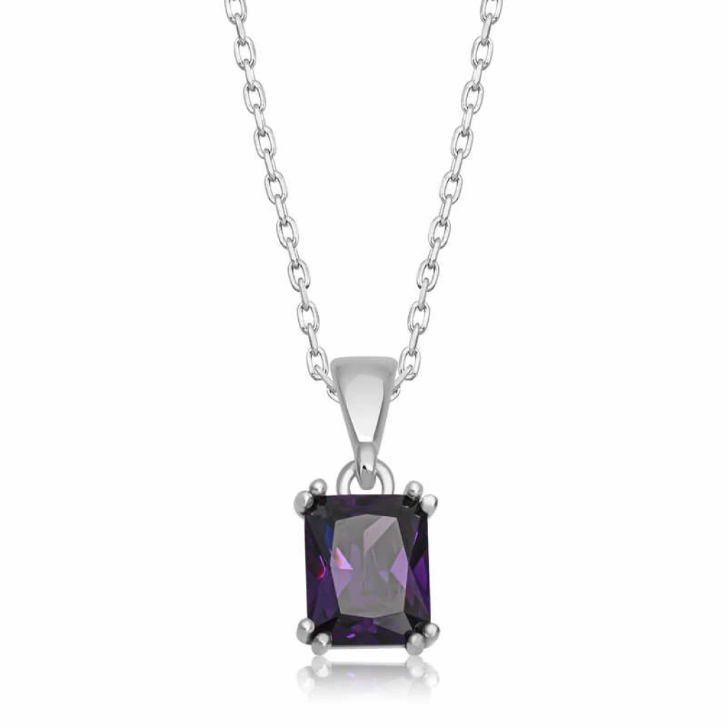 Gümüş Mor Kristal Kare Taşlı Kadın Kolye