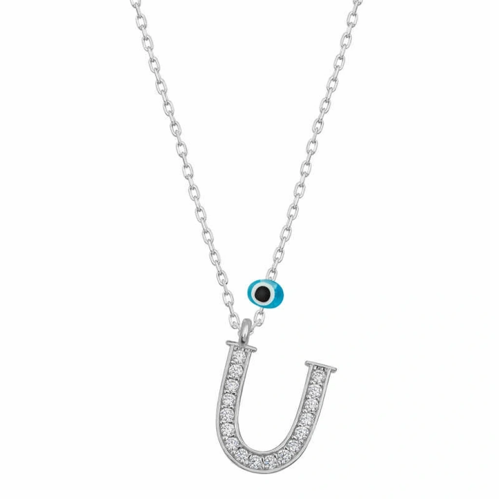 Gümüş Nazar Rodyum U Harfi Kadın Kolye
