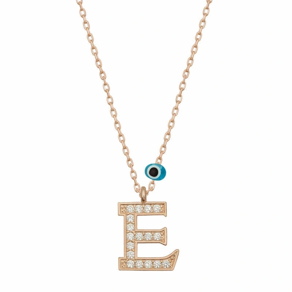 Gümüş Nazar Rose E Harfi Kadın Kolye
